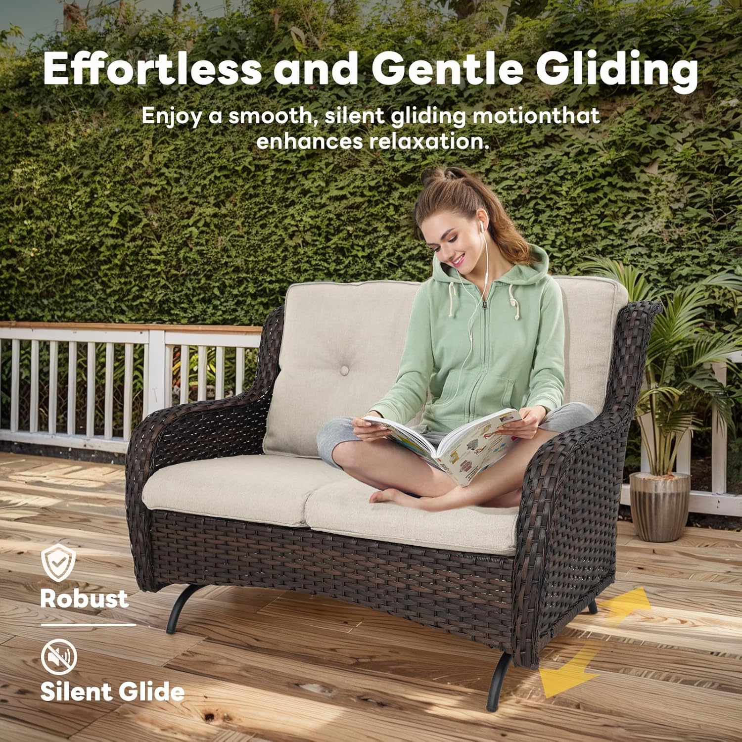 - 360Β° Swivel & Smooth Glider Chairs β Enjoy ultimate comfort with the swivel rocker chairs featuring 360Β° rotation and a gliding function, while the loveseat glider chair offers a soothing back-and-forth motion, making Belord outdoor patio furniture set ideal for outdoor lounging.