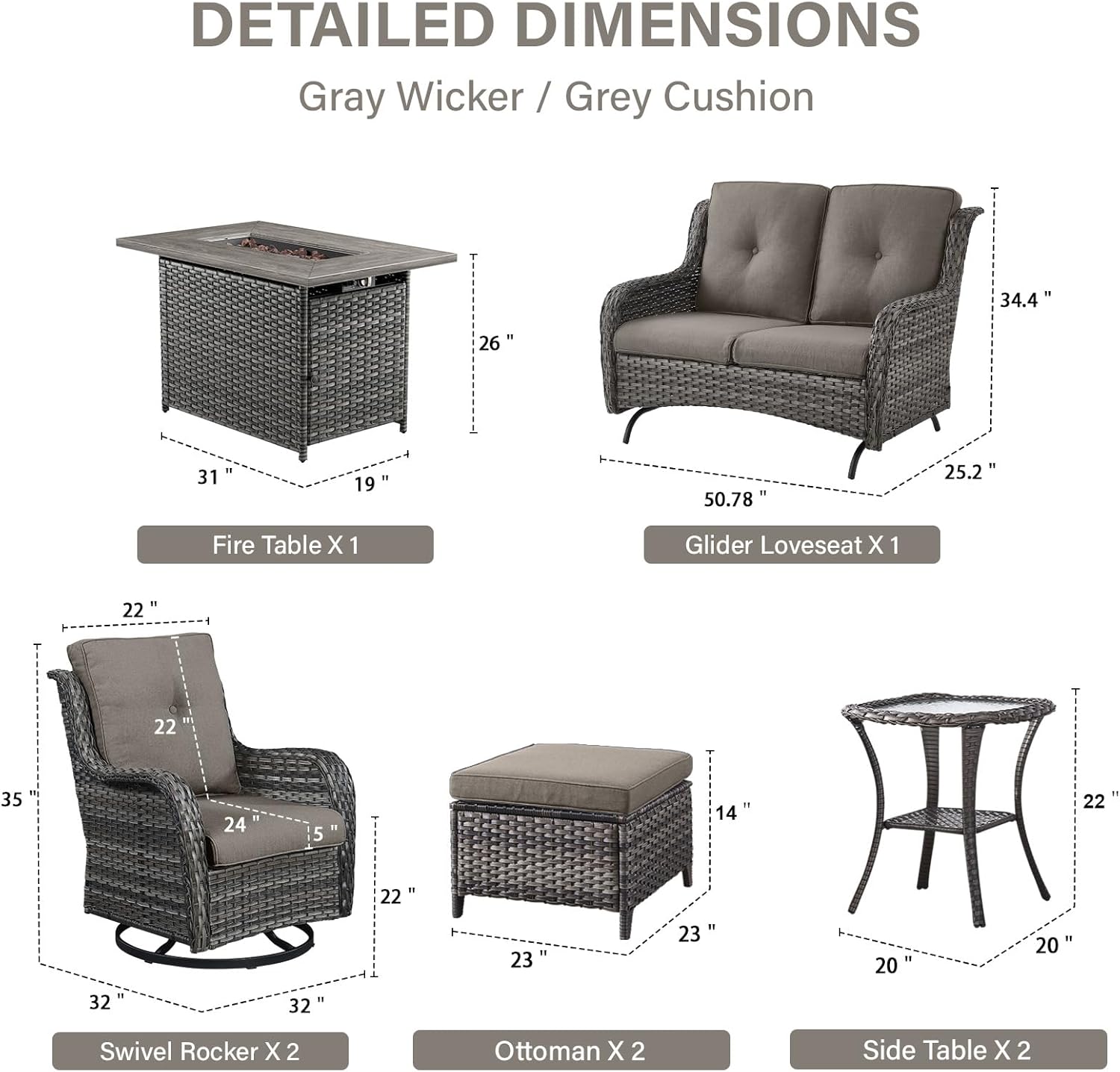 - Size : 8 PCS - Loveseat Glider & Fire Table