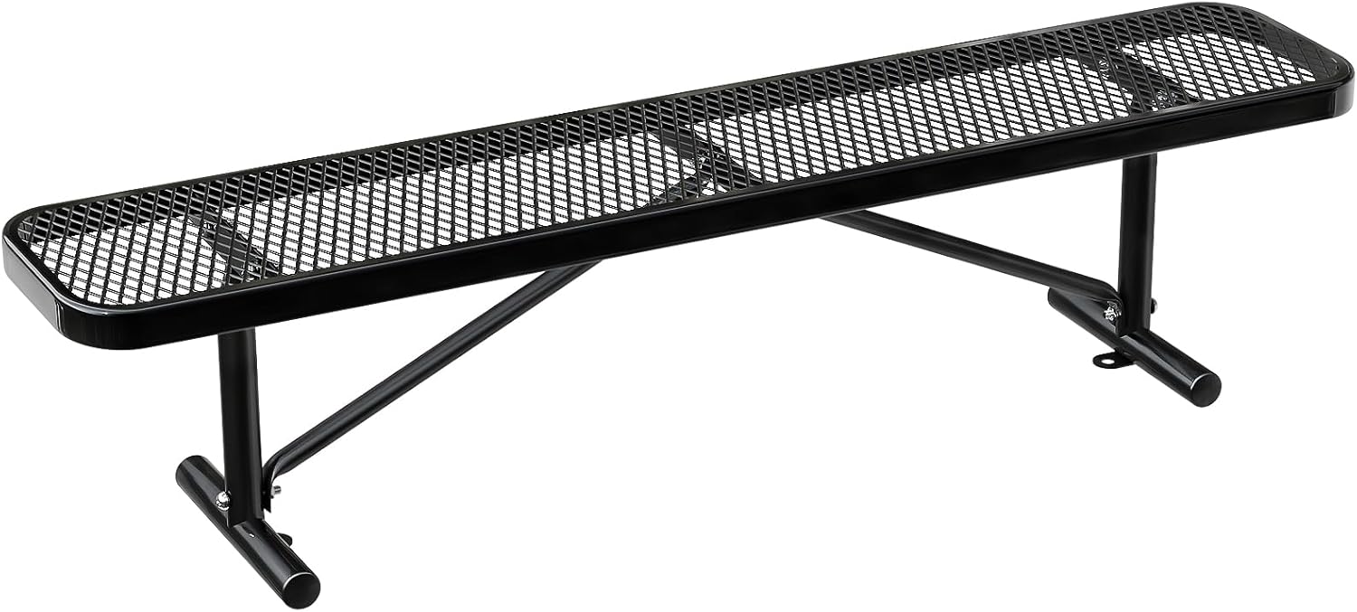 Heavy-Duty Park Bench or Table for Outside - Black Coated Outdoor Furniture Steel Bench, Commercial-Grade Outdoor Benches Weatherproof for Park, Patio, Porch (Black, 6FT (Without Backrest))