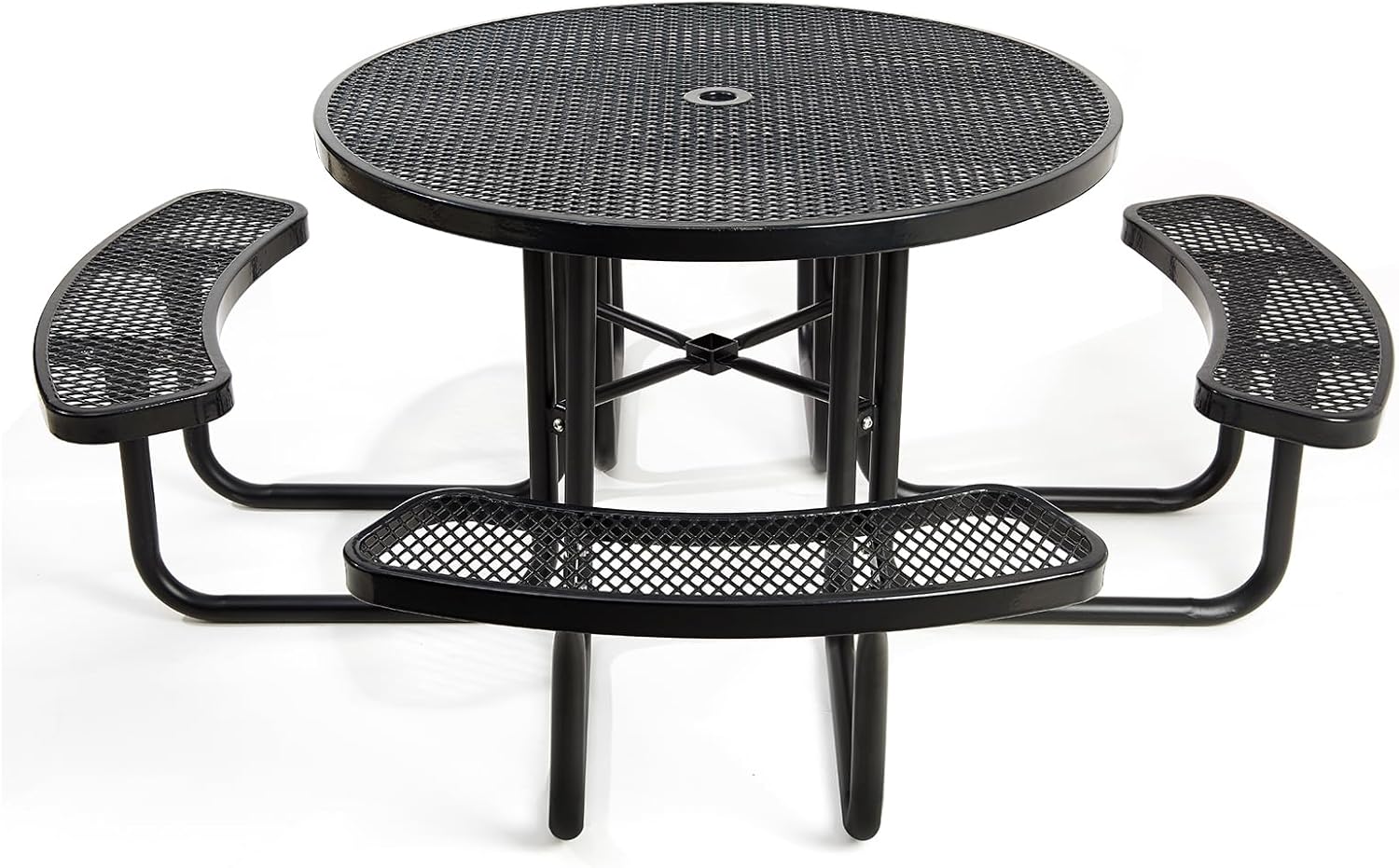Heavy-Duty Park Bench or Table for Outside - Black Coated Outdoor Furniture Steel Bench, Commercial-Grade Outdoor Benches Weatherproof for Park, Patio, Porch (Black, 46” (Rd. Table))