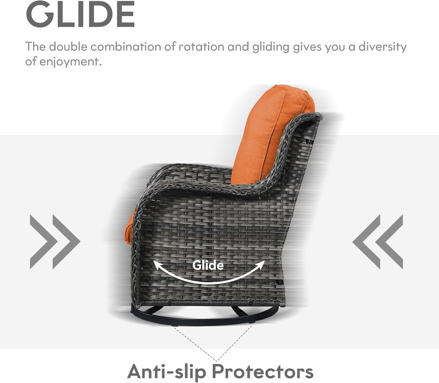 Outdoor Swivel Rcoker Wicker Chairs - Swivel Patio Chairs Set of 2 Patio Furniture Sets with Covered Cushion for Porch Deck Balcony Backyard, Orange Cushion