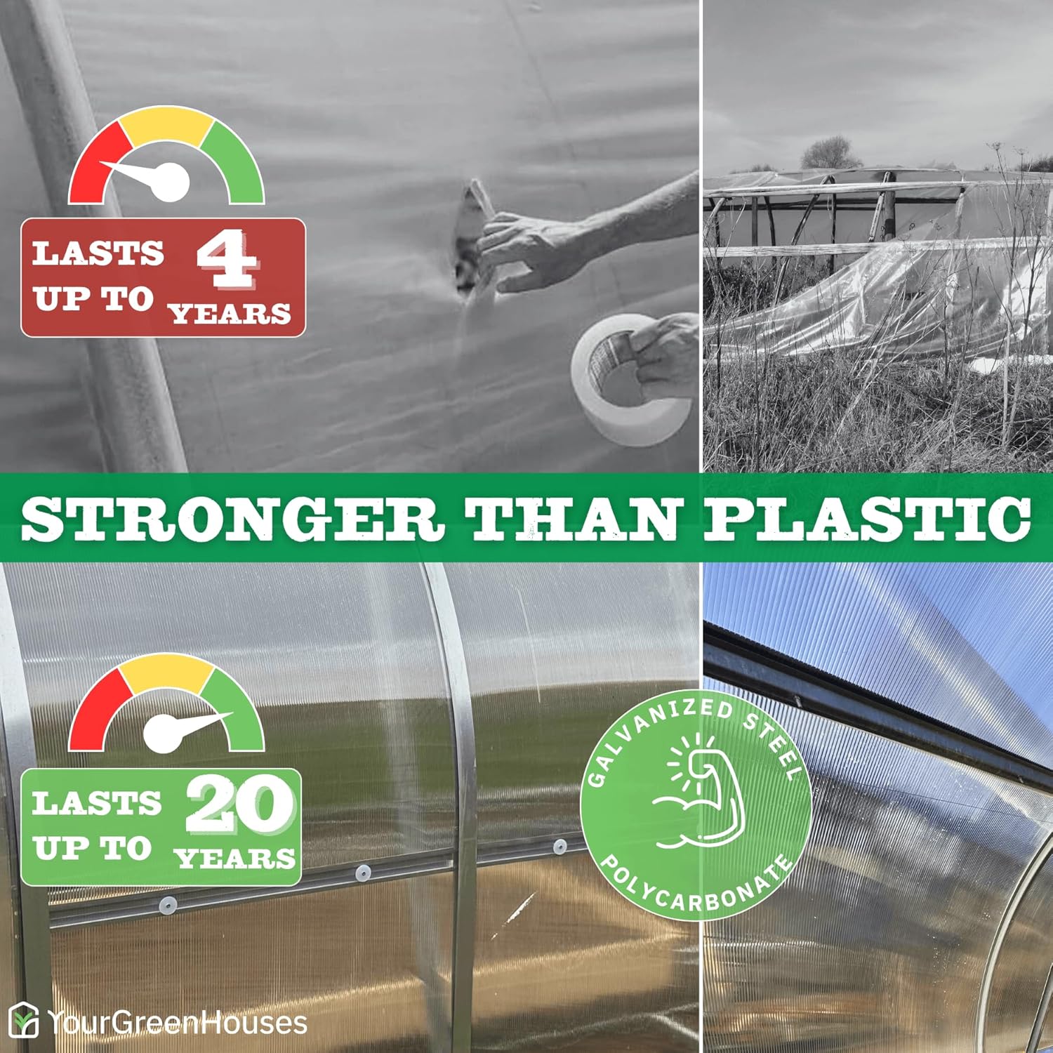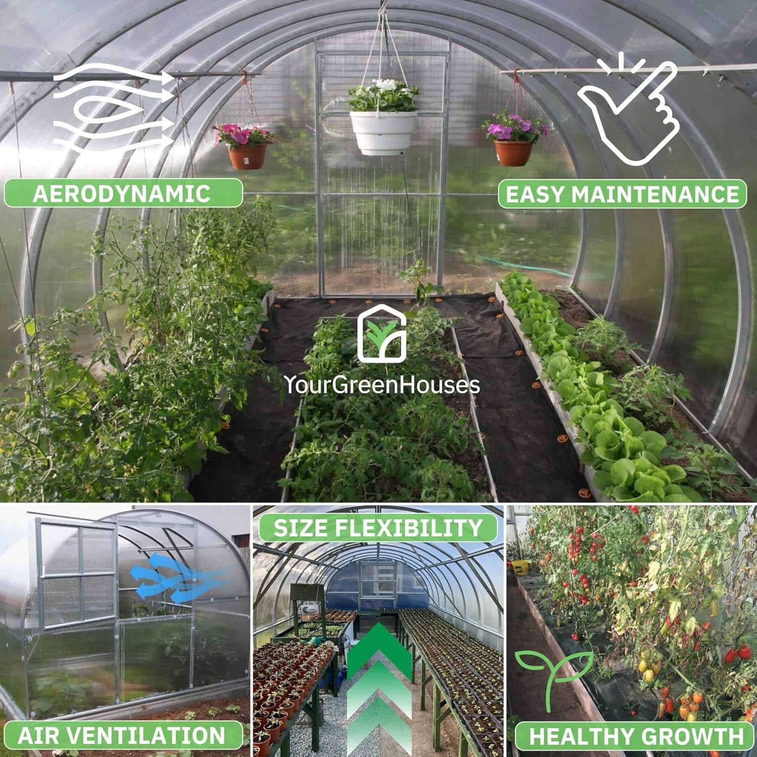 - DON’T BE LIKE THE 3 LITTLE PIGS: Forget flimsy greenhouses for outdoors; Crafted in Europe for unmatched durability & excellence, our greenhouse kit is made with galvanized steel and 0.23'' polycarbonate panels, ready to withstand winds up to 65 mph; No wolf (or storm) will blow this tunnel greenhouse down.