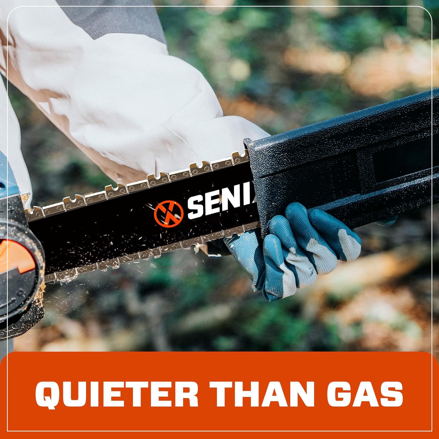 - ใ๐๐๐๐จ๐ซ๐ญ๐ฅ๐๐ฌ๐ฌ ๐๐ฎ๐ญ๐ญ๐ข๐ง๐ ๐๐จ๐ฐ๐๐ซ๐ก๐จ๐ฎ๐ฌ๐ใThe SENIX electric chainsaw features a 14-inch bar and achieves a chain speed of 20 m/s, delivering excellent performance for trimming branches and cutting firewood. With two 4Ah batteries, it can make over 90 cuts per charge (based on 3.9" ร 3.9" cuts), making it perfect for outdoor workers, gardeners, and camping enthusiasts who need a reliable power tool for long outdoor tasks or camping trips.
