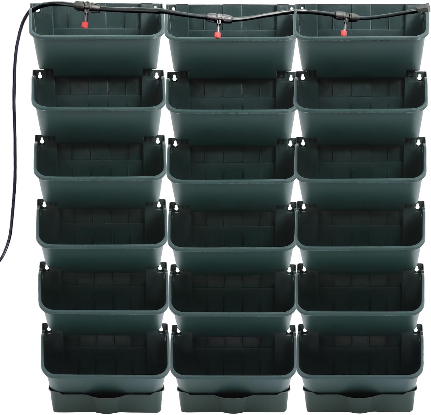 Self Watering Wall Planter with 18 Pots, Wall Planters for Indoor Plants, Vertical Garden Planter, Wall Mounted Plastic Plant Grow Pots for Fruits Vegetables Flowers Herbs (Green)