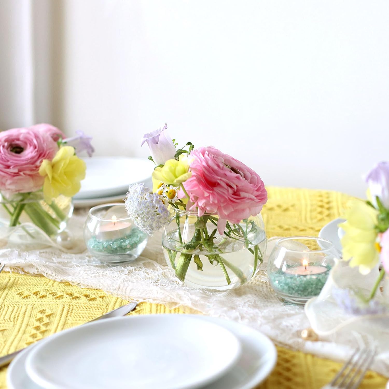 24 Pack Glass Bubble Vases,Small flower bud vases bulk,4"W x3"H Set of 12 Pcs Clear Bowl Vase,2.6"W x2.2"H Set of 12 Pcs Round Candle Holders,Mini Globe Vase Centerpiece for Wedding Party,Home Decor