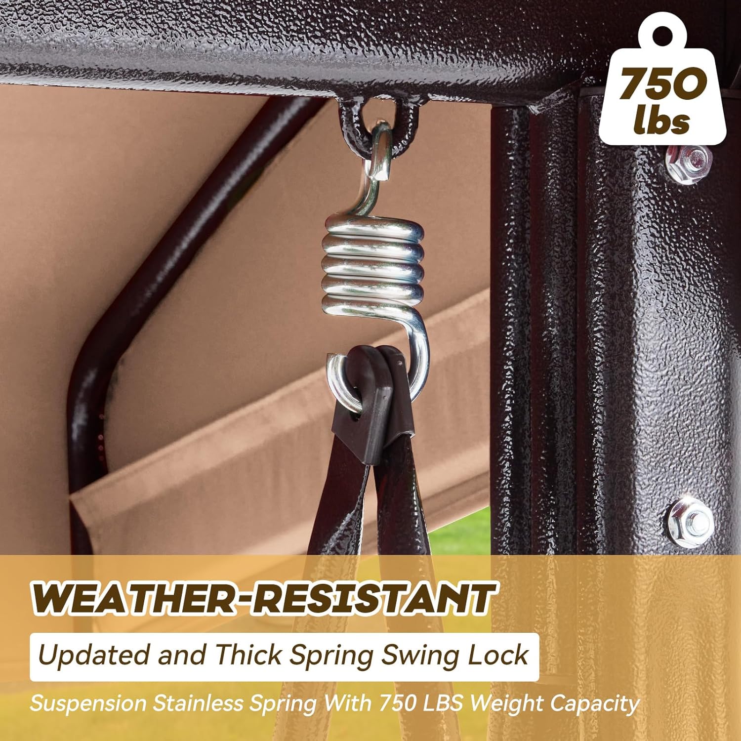 - ăSturdy and Safe Constructionă: The maximum weight capacity of porch swing is 750 pounds, our glider swing is designed for 3 adults to sit comfortably. The swing outdoor has a reliable buckle on backrest, ensuring stability and preventing any unwanted swinging. The double protection of 3 seat garden swing is designed for preventing accidental tipping.