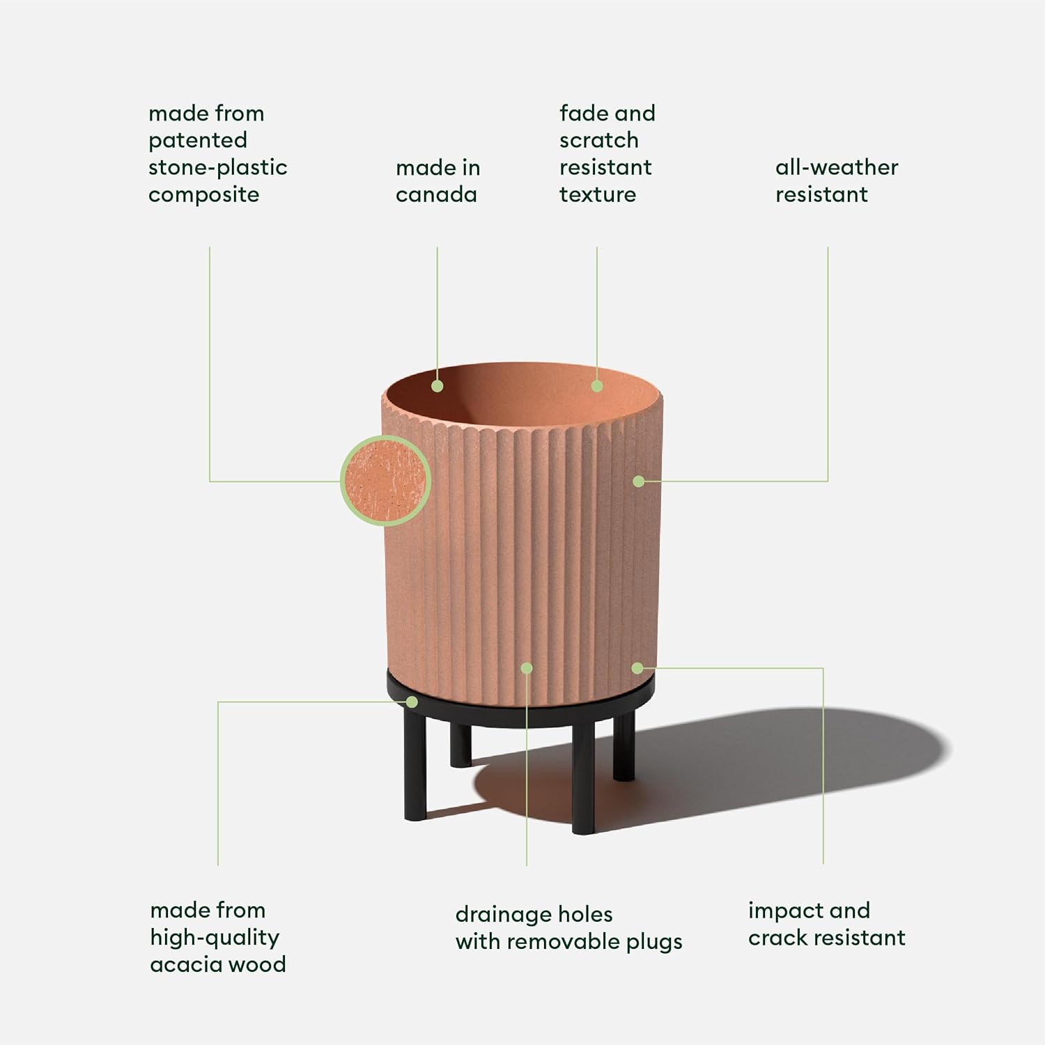 Veradek Demi Series Round Planter w/Stand for Porch/Patio | Durable Plastic-Stone Composite & Wooden Stand | Modern Décor for Tall Plants, Flowers