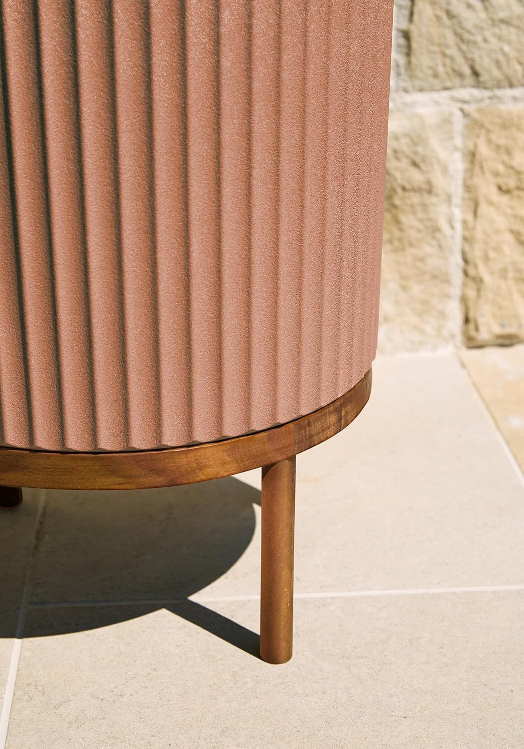 Veradek Demi Series Round Planter w/Stand for Porch/Patio | Durable Plastic-Stone Composite & Wooden Stand | Modern Décor for Tall Plants, Flowers
