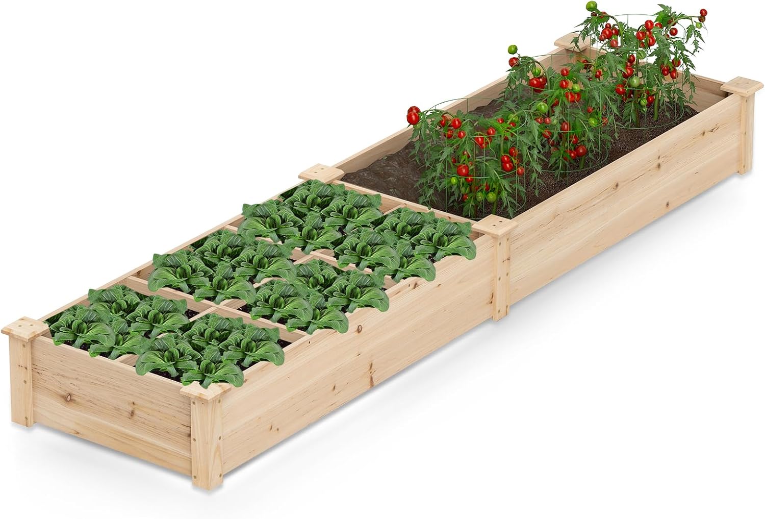 - Exquisite Details & Dimensions: The reinforced corners provide a solid foundation for your plants, while the removable divider rods offer flexibility in organizing your plants efficiently. This elevated wood planter measures 90" x 25" x 10" (228 x 62 x 25 cm) .