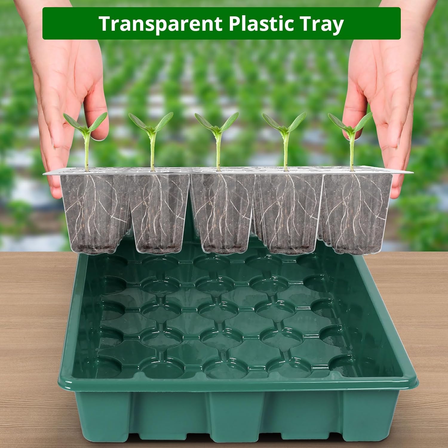 - [Efficient Drainage]: The bottom of each seed starting tray features drainage holes, facilitating excess water drainage for healthier plants. Additionally, the base tray can be utilized for hydroponics when filled with water, enhancing versatility and functionality.