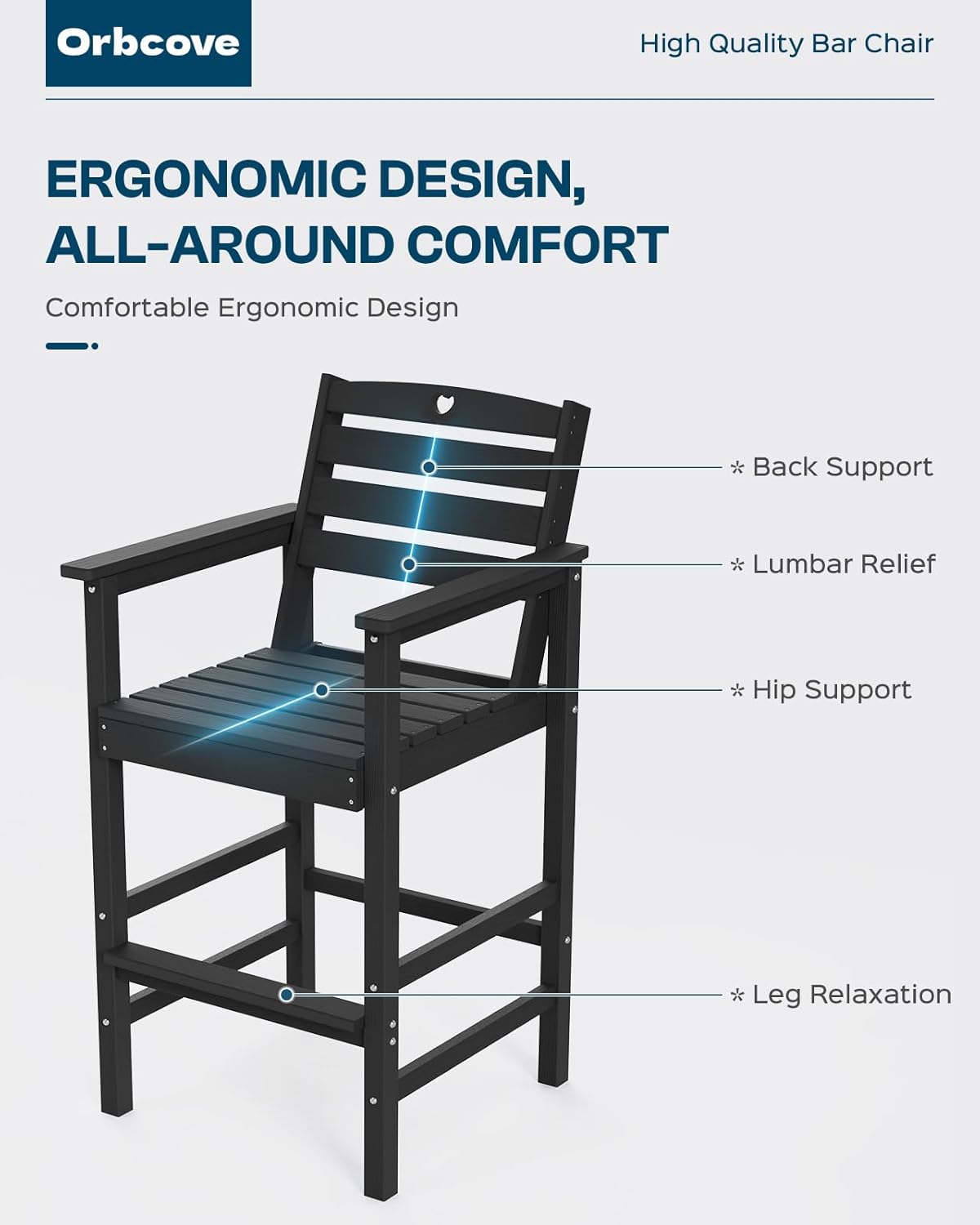 - Durable All-Weather Design: (Please note!!!Your order consists of two separate packages, which may be delivered at different times.) Crafted from HDPE with a natural wood grain finish, Orbcove bar table and chairs set withstands sun, rain, and wind without fading or cracking. Ideal for deck furniture, backyard furniture, or porch furniture, it’s perfect for year-round outdoor living.