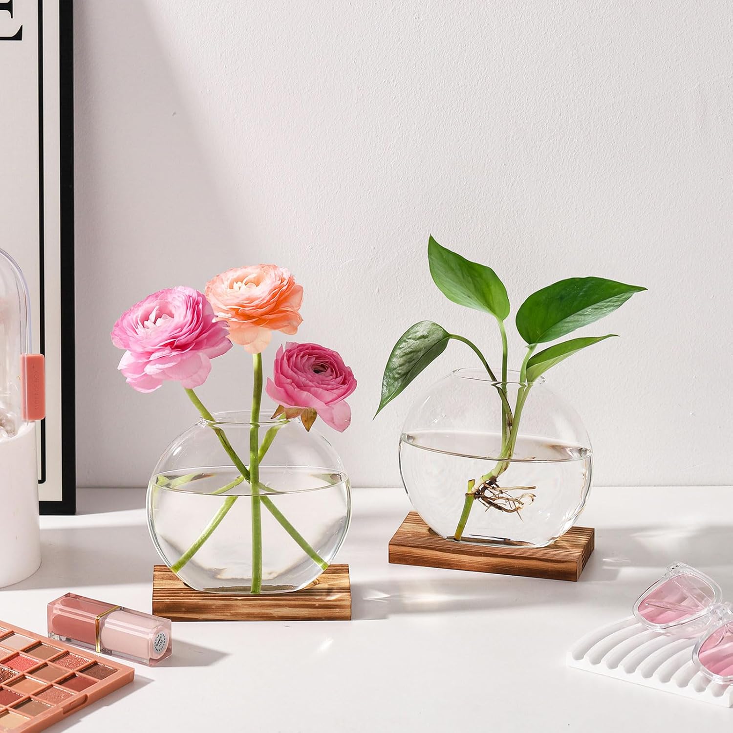 - Hydroponic planter with wooden base - This plant propagation holder is equipped with a wooden base, which is finely polished with rounded edges and no burrs, not only provides stable support for the vase but also adds a natural and rustic charm. But please notice that donโt fill this hydroponic planter up with water, and you can always add some rocks inside to keep this plant propagation holder in place, reducing the risk of the vase tipping over.