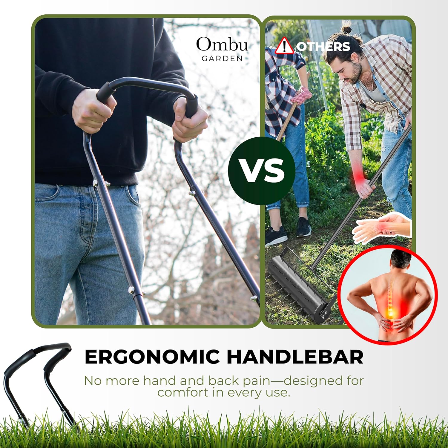 - β Ergonomic Handle Bar Comfort: Reduces strain on your back and wrists, this lawn aerator tool is built for easy use during lawn care sessions. The padded handle and balanced structure make it a great do it yourself lawn aeration solution. Ideal for users seeking an efficient hand aerator lawn tool that combines comfort with performance, making it one of the best aerator lawn tool choices for home use.