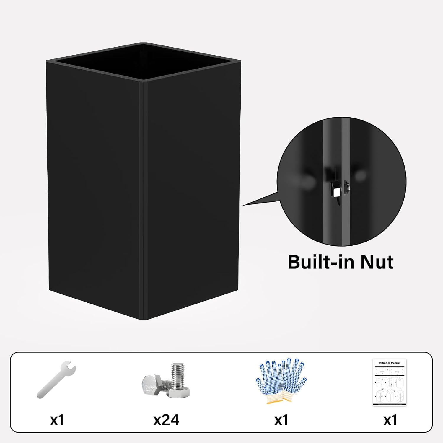 - Weather Resistant Planter:Tall flower pots is made of thickened galvanized steel, with 3 layers of black outdoor special baking paint to prevent rust and fade. Heary duty metal construction guarantee the planters stability and sturdy, and can withstand any weather test