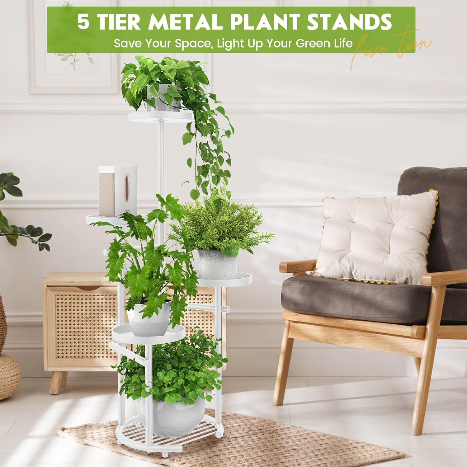 TOSKING 5 Tier Metal Plant Stand Indoor, Plant Shelf, Corner Shelf Flower Pot Stand for Outdoor Plant Stand for Living Room Balcony Garden Patio Bedroom (White, 38in)