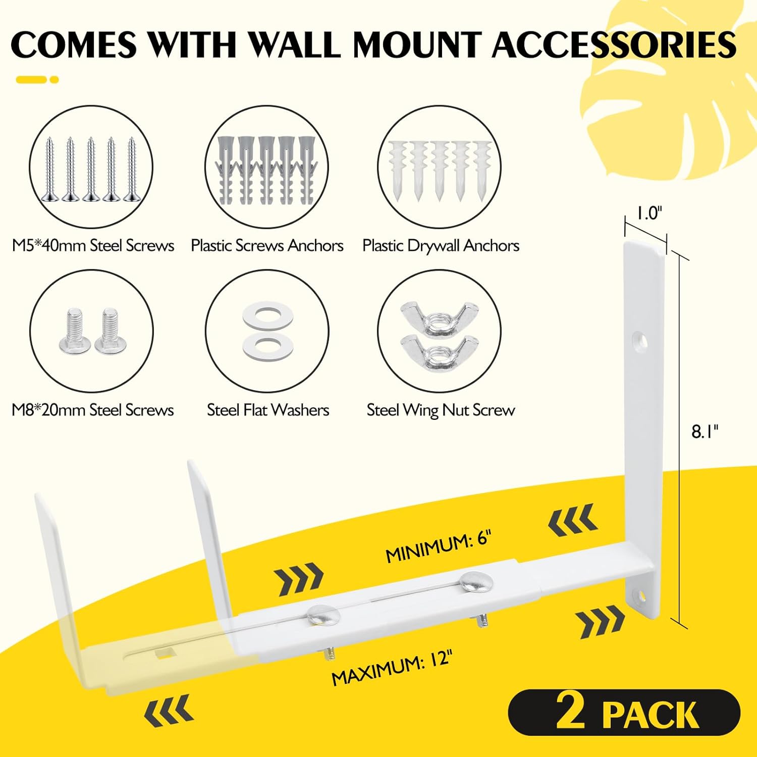 LukLoy Window Planter Box Brackets, 2 Pack Adjustable Heavy Duty Wall Mount Window Flower Boxes Outdoor with Bracket (6 to 12 in), with 70lbs Capacity, White