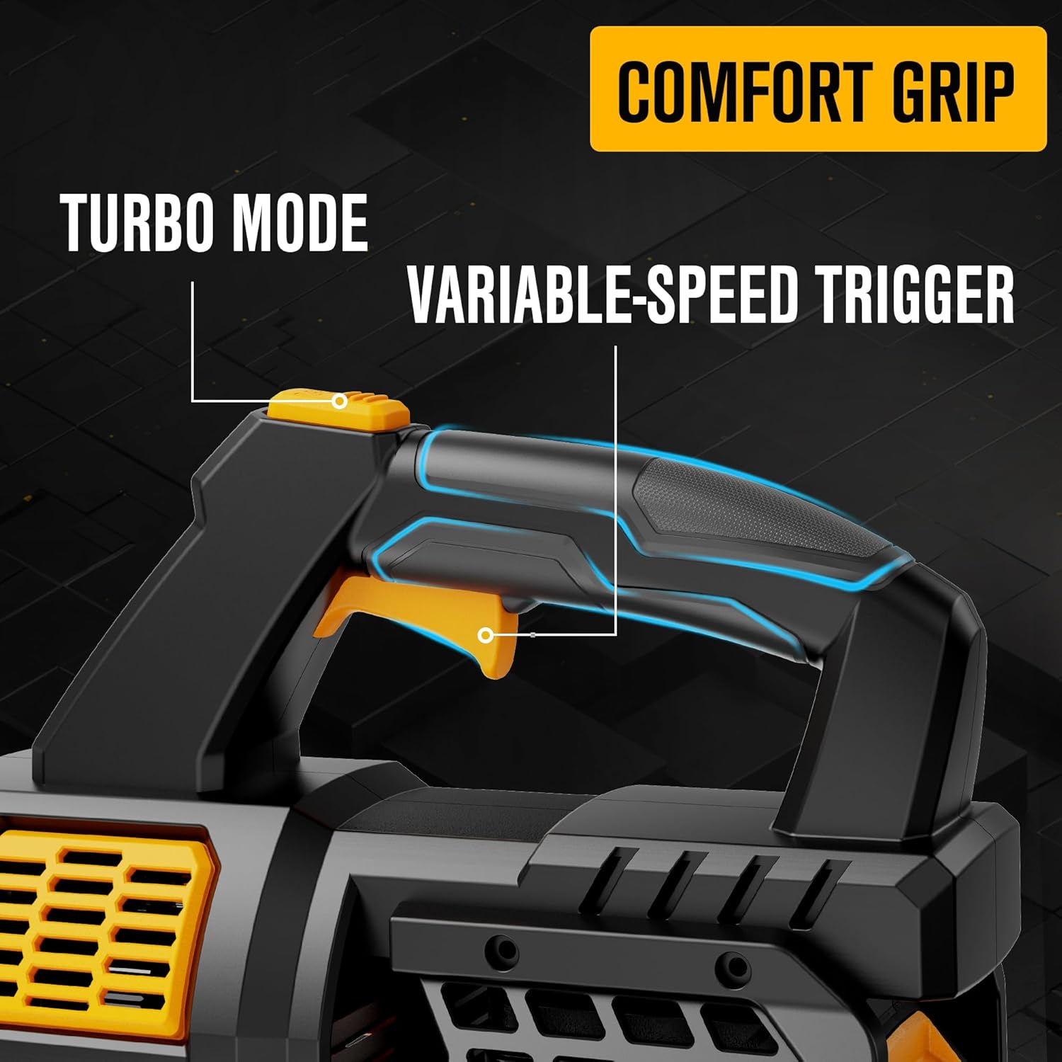 - Variable-Speed + Turbo Technology - Unleash the power of advanced turbo technology with the EWORK electric leaf blower, Air volume up to 550CFM in turbo mode and max air speed to an impressive 150MPH. Although the turbo mode uses a lot of power (which drains the battery faster), it efficiently tackles stubborn debris, making cleanup a breeze. Enjoy the lightweight and cordless design, ensuring a superior user experience compared to conventional leaf blowers