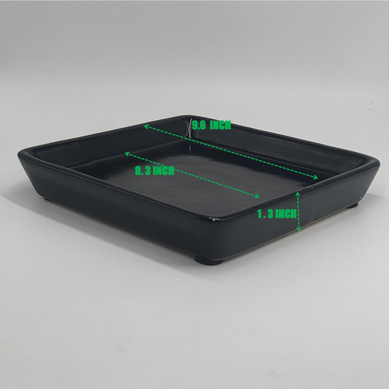 Square Plant Saucer 10 Inch 1 Pack,Plant Trays for Pots, Black Ceramic Plant Saucers for Indoors Outdoors, Plant Drip Tray 4 6 8 10 12 14 Inch