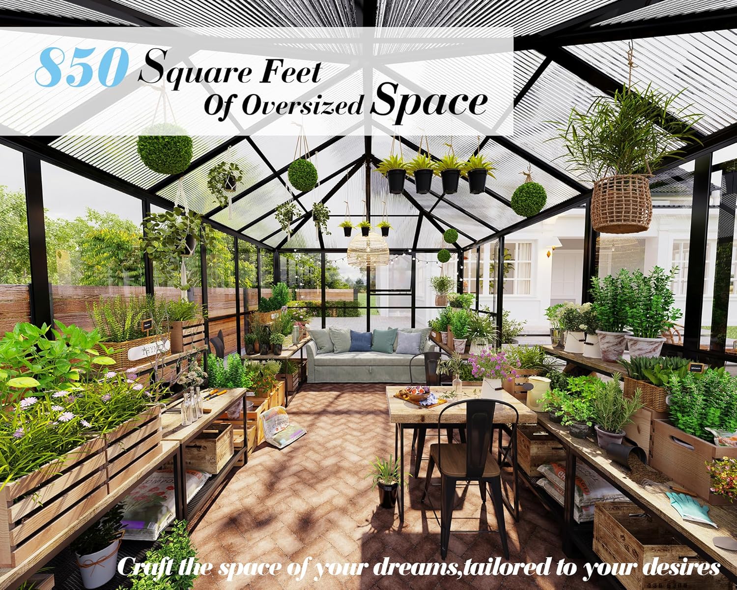 - 【Versatile Space】850 cu. Ft. to create a perfect warm environment for your personal plants. Transform your polycarbonate greenhouse into a functional living space by adding furniture. Exclusive design patent & a spear-like top discourages bird perching. Recommended to build a 15x10.5 FT foundation for it