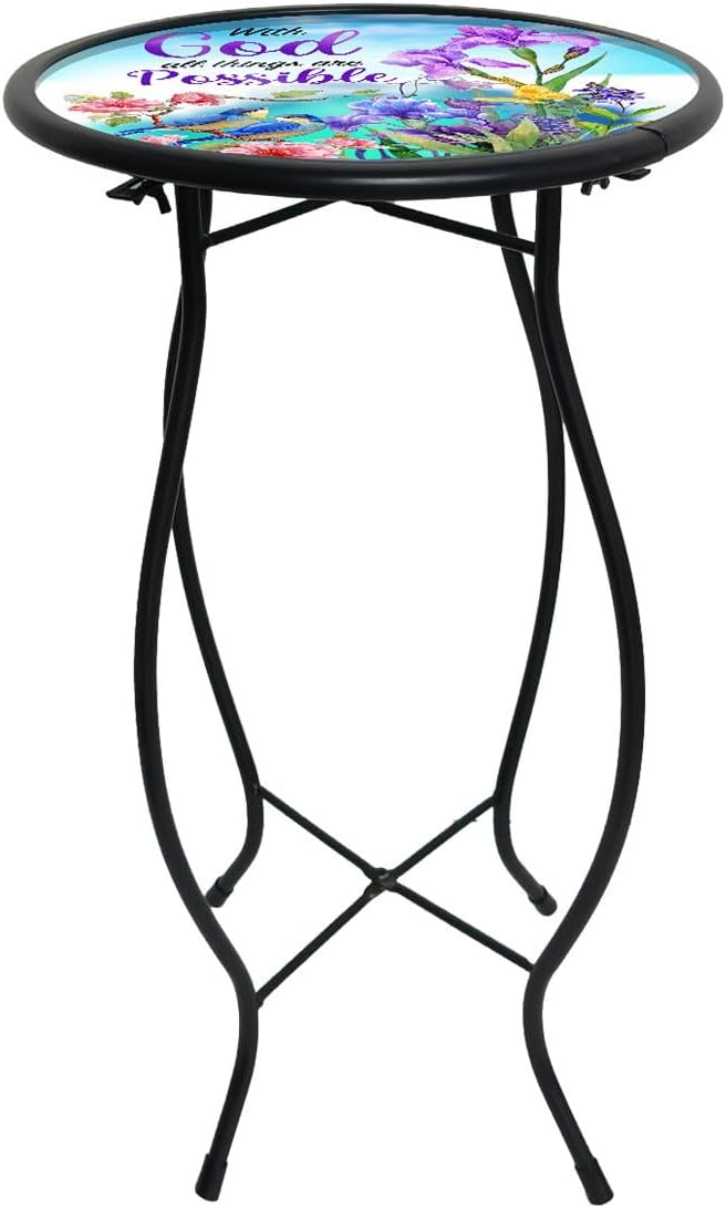 - Printed Glass Top Catches Sunlight Enhancing Porch or Patio