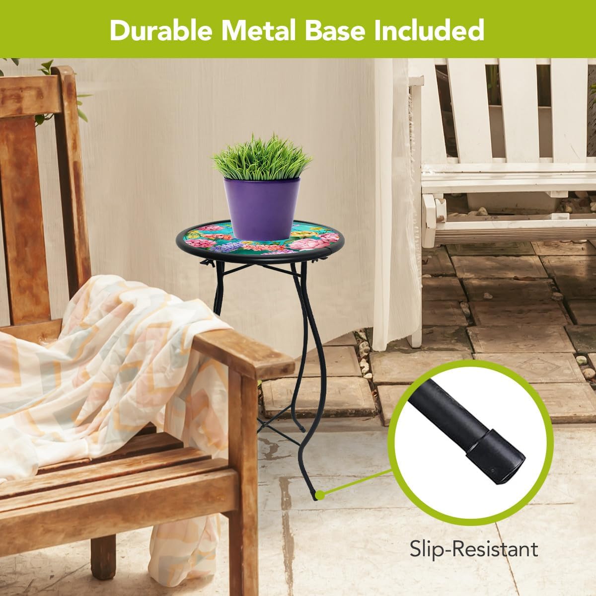 - Printed Glass Top Catches Sunlight Enhancing Porch or Patio