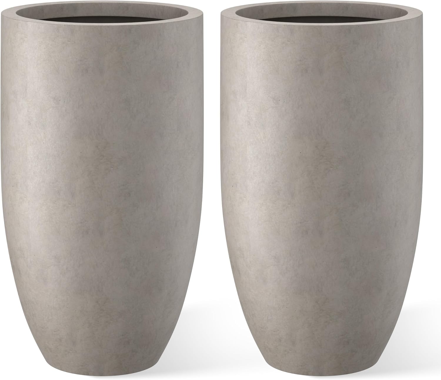 Kante 24 Inch Tall Round Concrete Planter, 2 Pack Large Indoor Outdoor Plant Pots with Drainage Hole and Rubber Plug, Modern Decorative Garden Pots for Home Patio Porch, Weathered Concrete