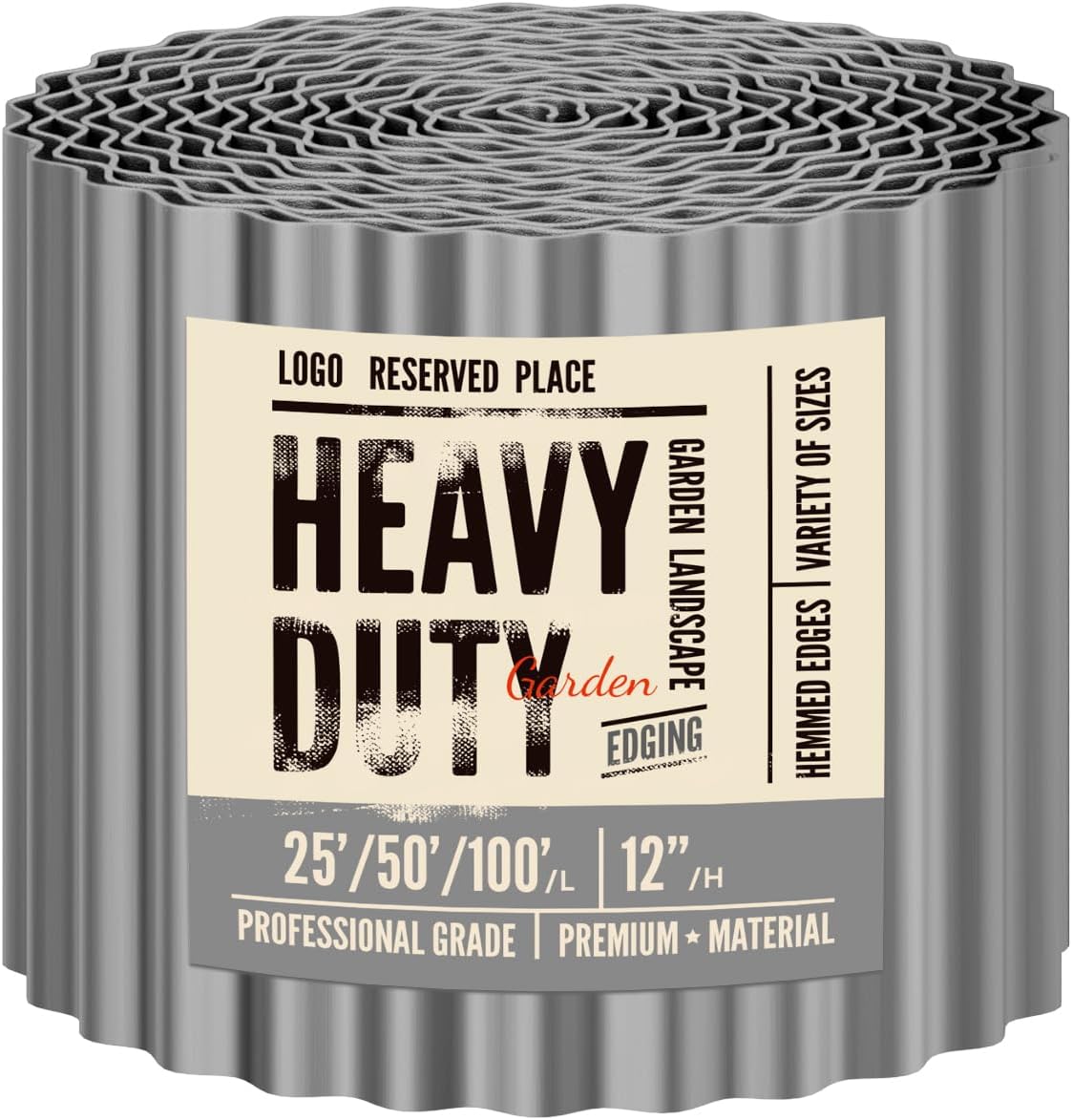 Land Guard Corrugated Garden Edging Border,12" x 50' Landscape Paver Edging, Tall Landscape Edging, Fence for Garden, Flower Bed, Lawn and Landscape Edging (Grey)