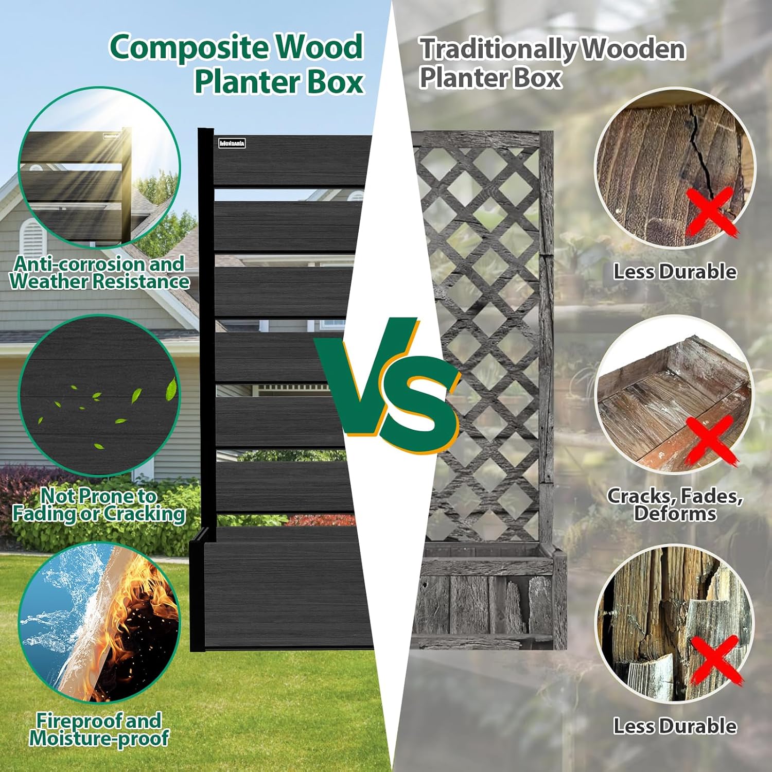 - Modern & Stylish Design: The Vertical Screen Planter Bed combines sleek composite wood panels with a strong black aluminum frame, creating a contemporary and sophisticated look for your garden, patio, or backyard.