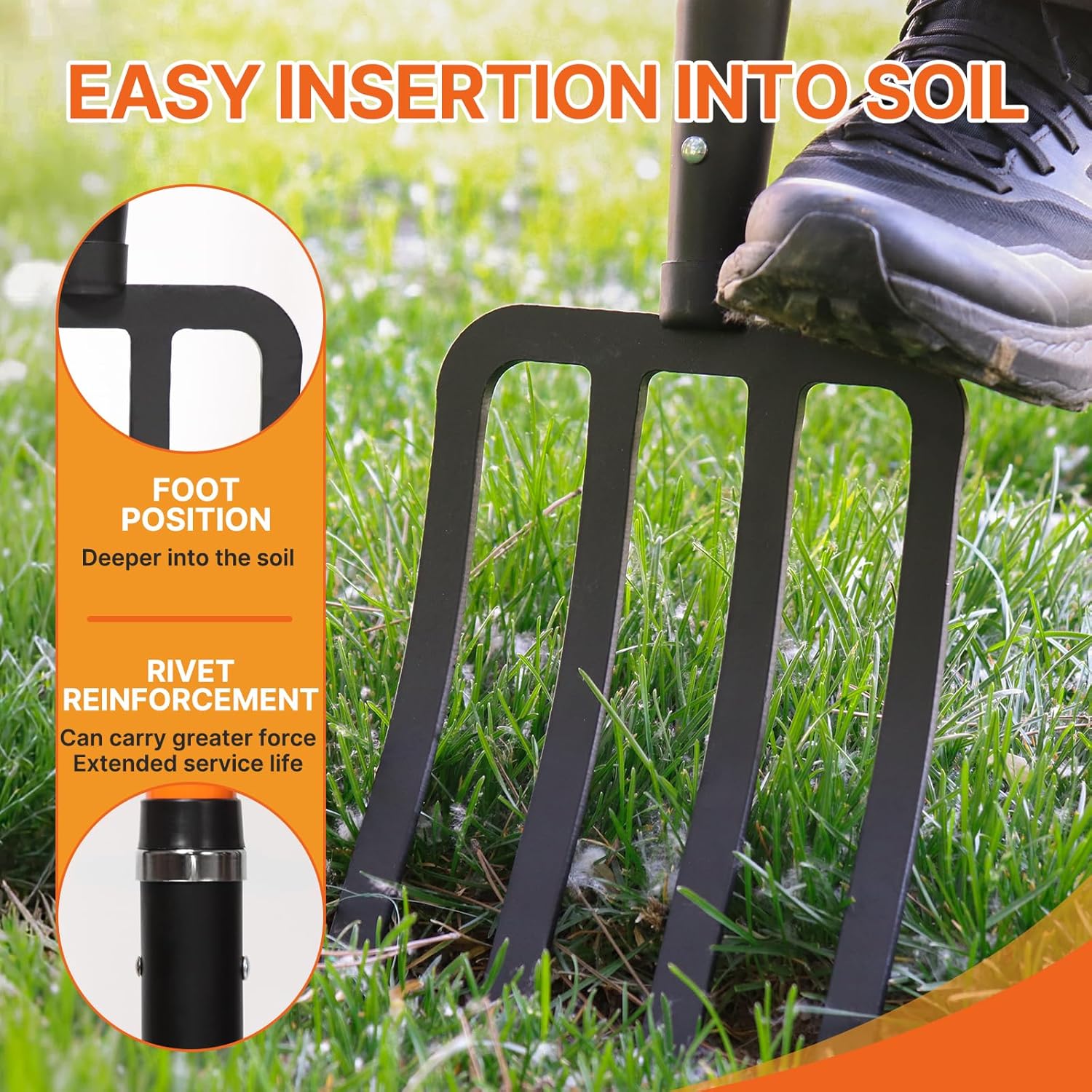 - 1.Heavy-Duty 4-Tine Design: Perfect for digging,aerating soil,and lifting roots or compost without damaging plants.Ideal for gardening,composting,and harvesting root crops like potatoes.