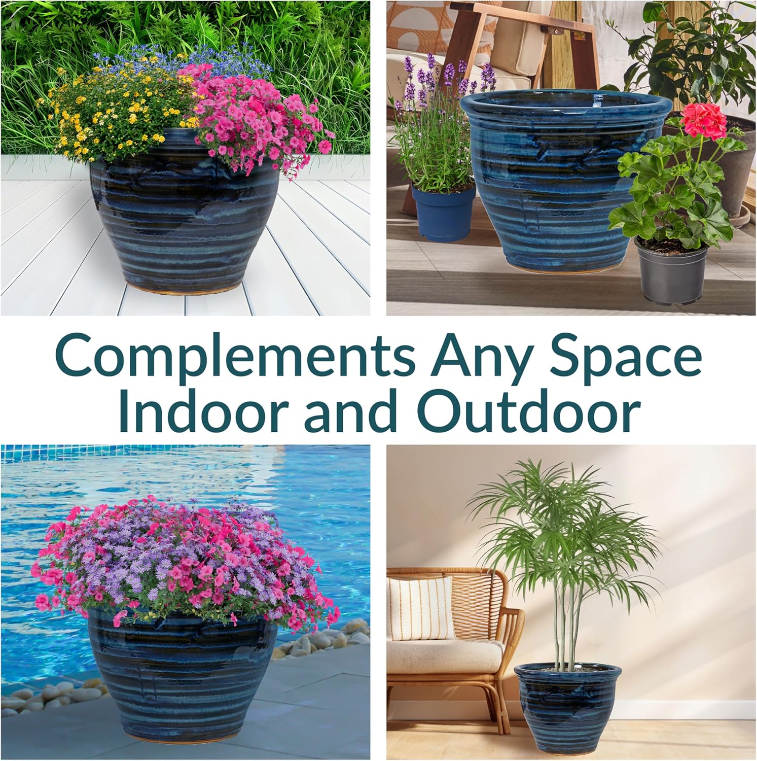 - DESIGNED FOR BEAUTY AND DURABILITY: This outdoor plant pot is crafted with a rich, hand-painted glazed finish that is kiln-fired for a classic, shining appearance. Subtle variations in color highlight the artisanal glazing process, making each piece truly unique. The durable ceramic construction offers natural UV and frost resistance, while its heavy weight adds stability to outdoor arrangements, keeping the planter upright in windy conditions.