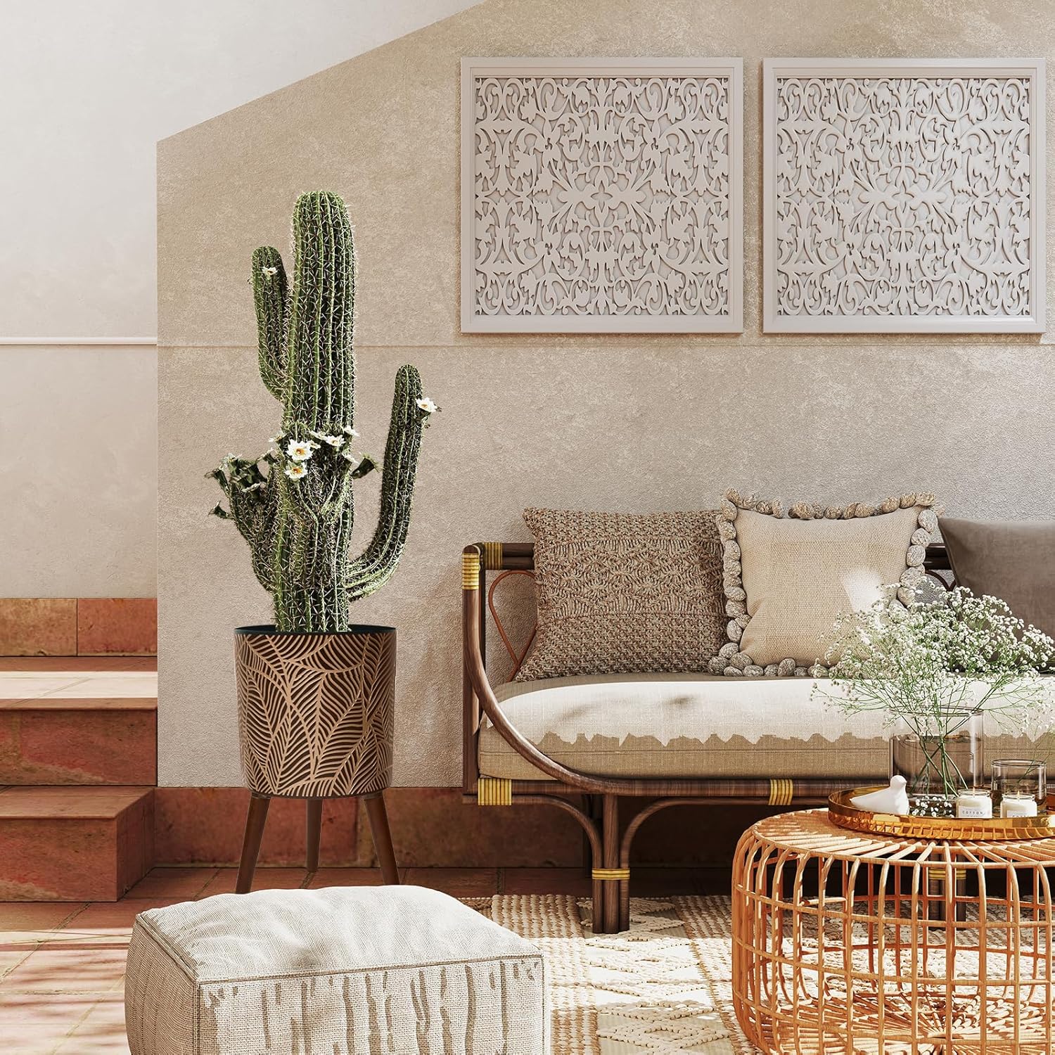 - Durable and Stylish Stand:Includes a sturdy wooden plant stand that adds both height and stability—perfect for showcasing tall plants, indoor greenery, or trailing vines in your favorite planter.