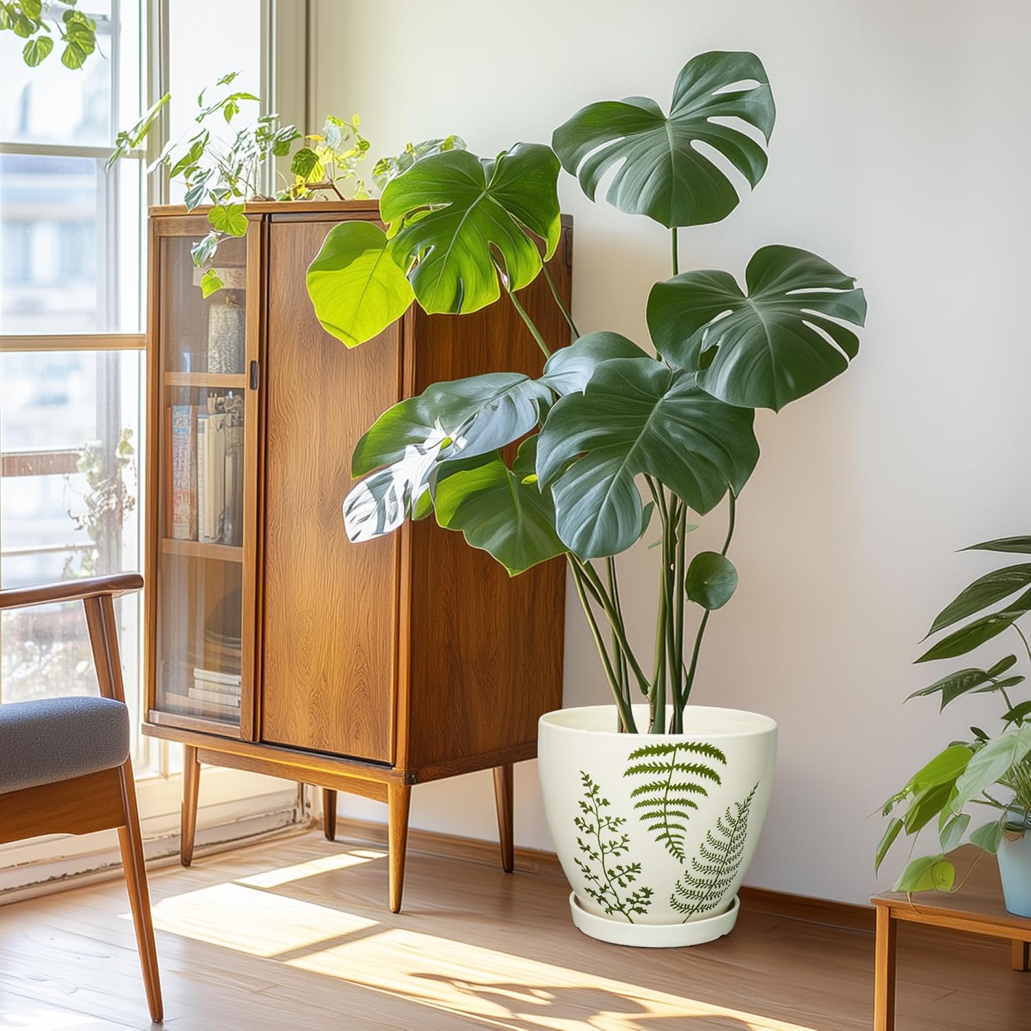 - Suitable for A Variety of Plants: This ceramic planter ideal for indoor plants like olive tree, snake plant, money tree, zz plant, monstera, peace lily, palm, fiddle leaf fig, bird of paradise, pachira aquatica, and so on
