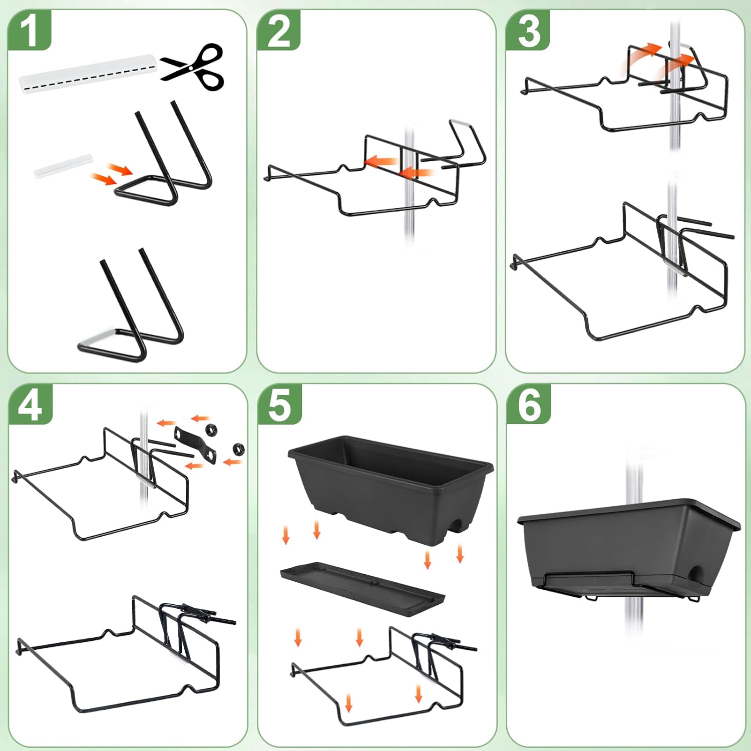 - Easy Installation : The hanging planters for outdoor assembly is simple, and it comes with a detailed installation manual and installation tool kit. Floating railing planter holder offers unparalleled possibility and versatility, transforming any railing into a picturesque garden oasis. Note: Only be installed on vertical railings(wood/vinyl/ spindles),which width ranging from 1-2 inches.