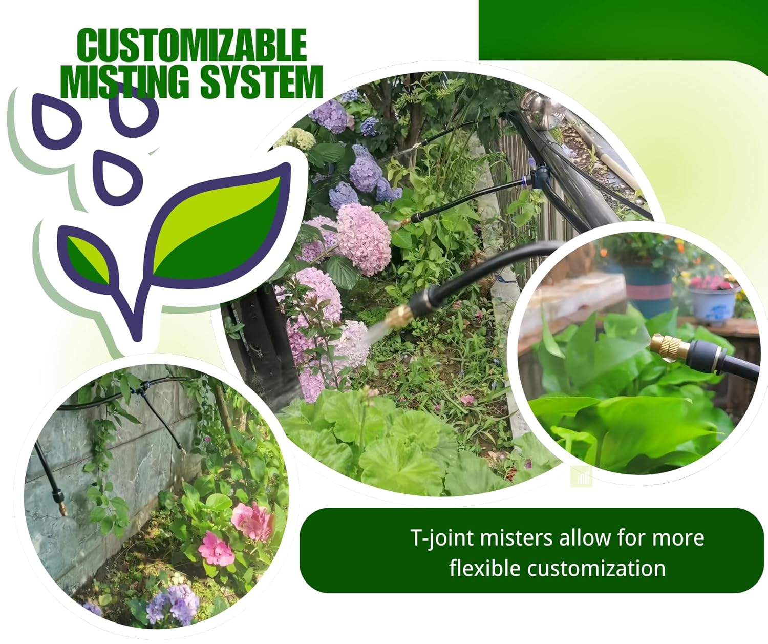 - 3. Each 360ยฐ adjustable misting nozzle consists of an 8-inch shape-memory tube and a high-quality brass nozzle. The flexible tubing holds its shape, allowing precise misting coverage in any direction.