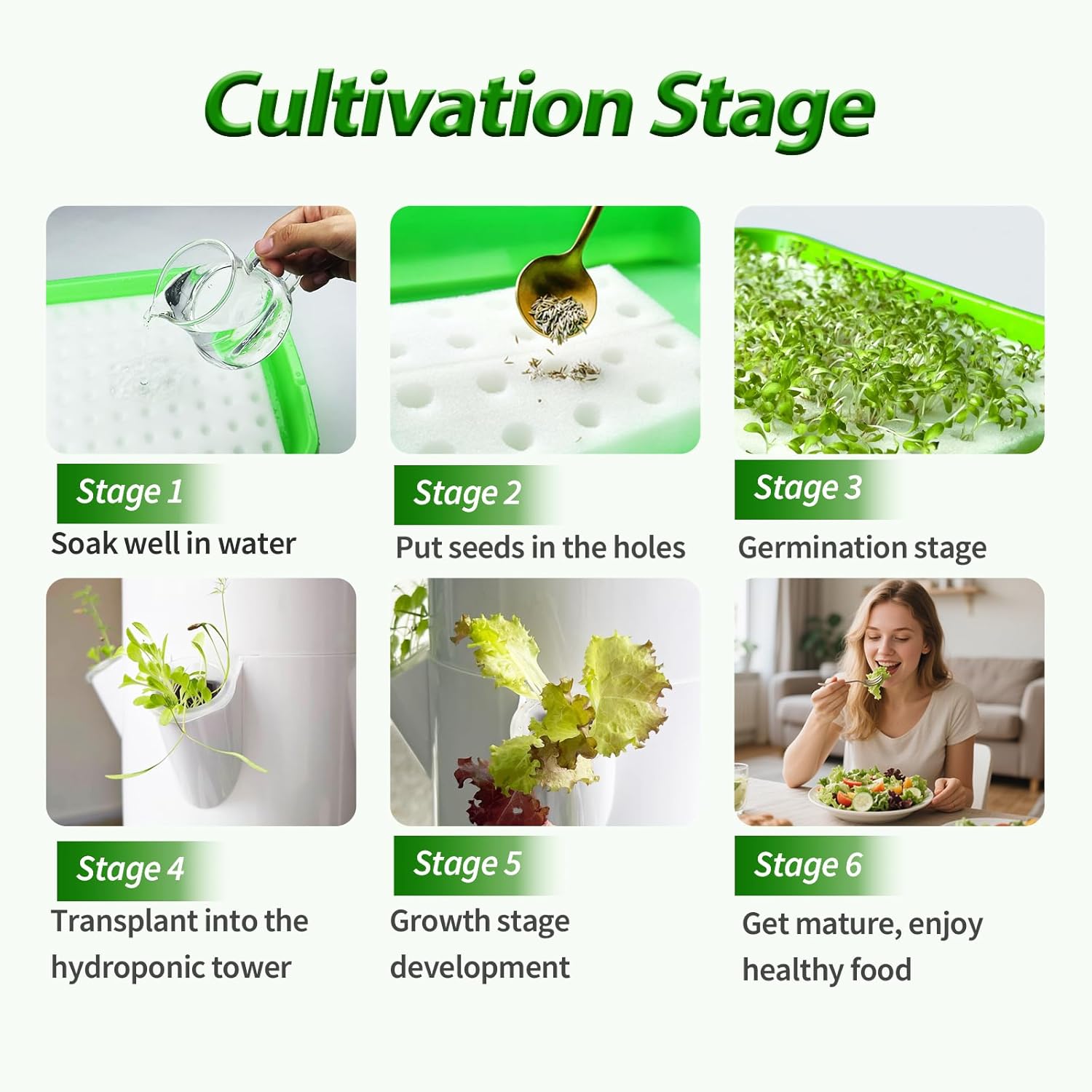 - 【Quiet & Versatile】This tall hydroponic tower planting system kit includes all needed parts and a thick sponge to reduce water noise. It made of premium healthy materials and is suitable for your living room, kitchen, bedroom, garden, or even a school