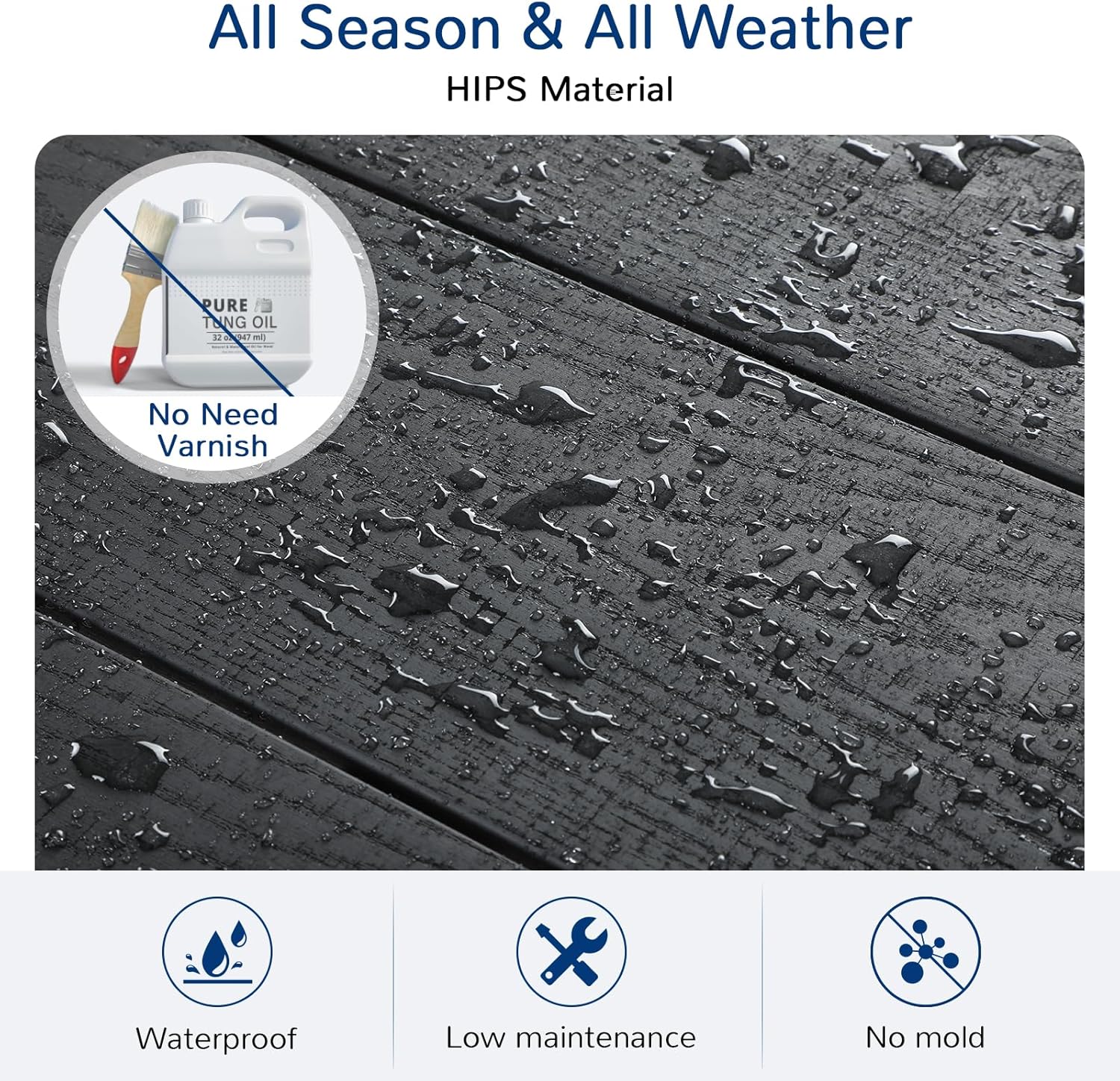 - ăCare FreeăNo painting, no staining. Easy to clean with water, a soft bristle brush or sanding sponge. Wood-like texture design, perfect match to your patio, balcony, deck, backyard, pool, bistro, home bar, etc.