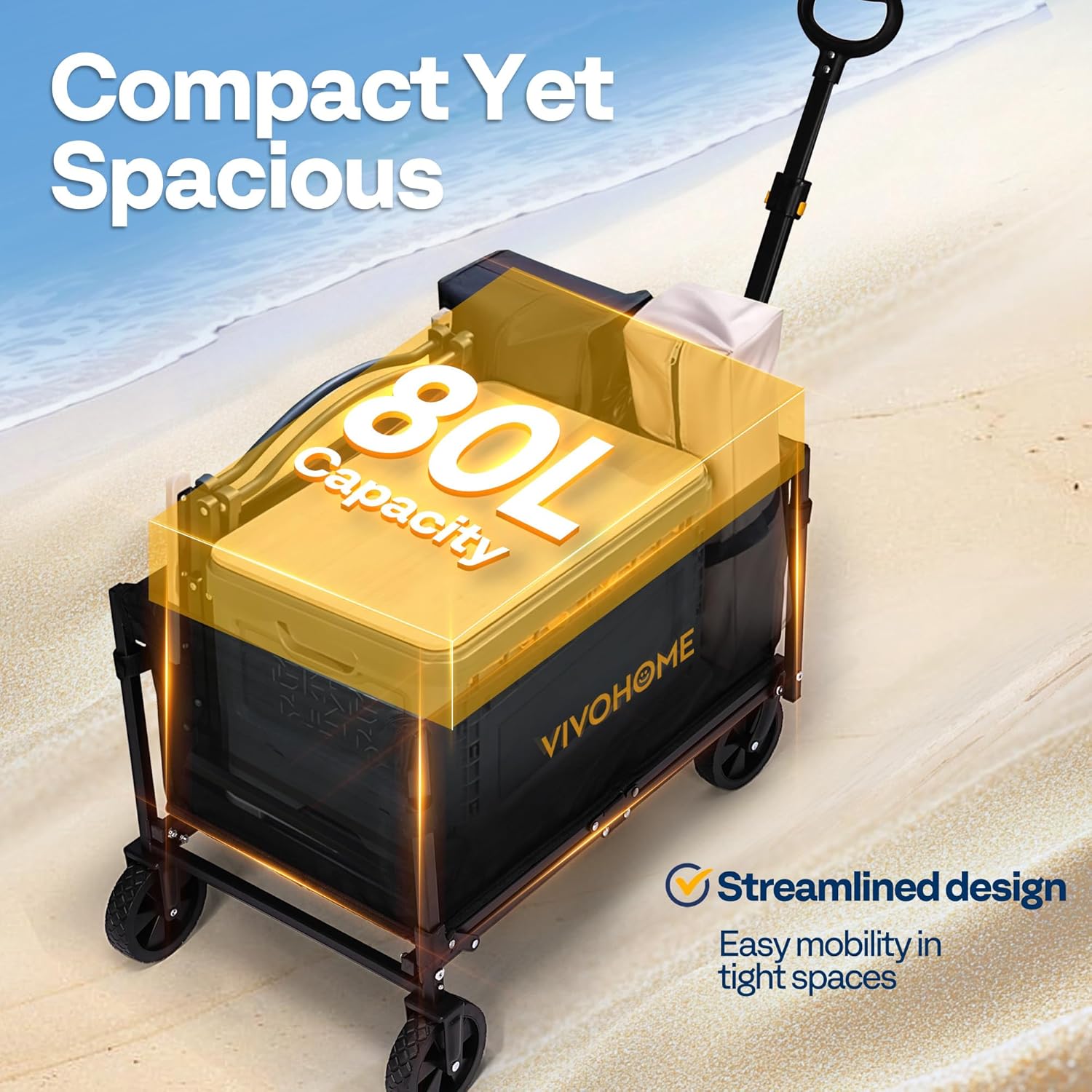 VIVOHOME Collapsible Wagon Cart Lightweight Portable Folding Utility Wagons with All-Terrain Wheels for Grocery Sports Garden Shopping Camping