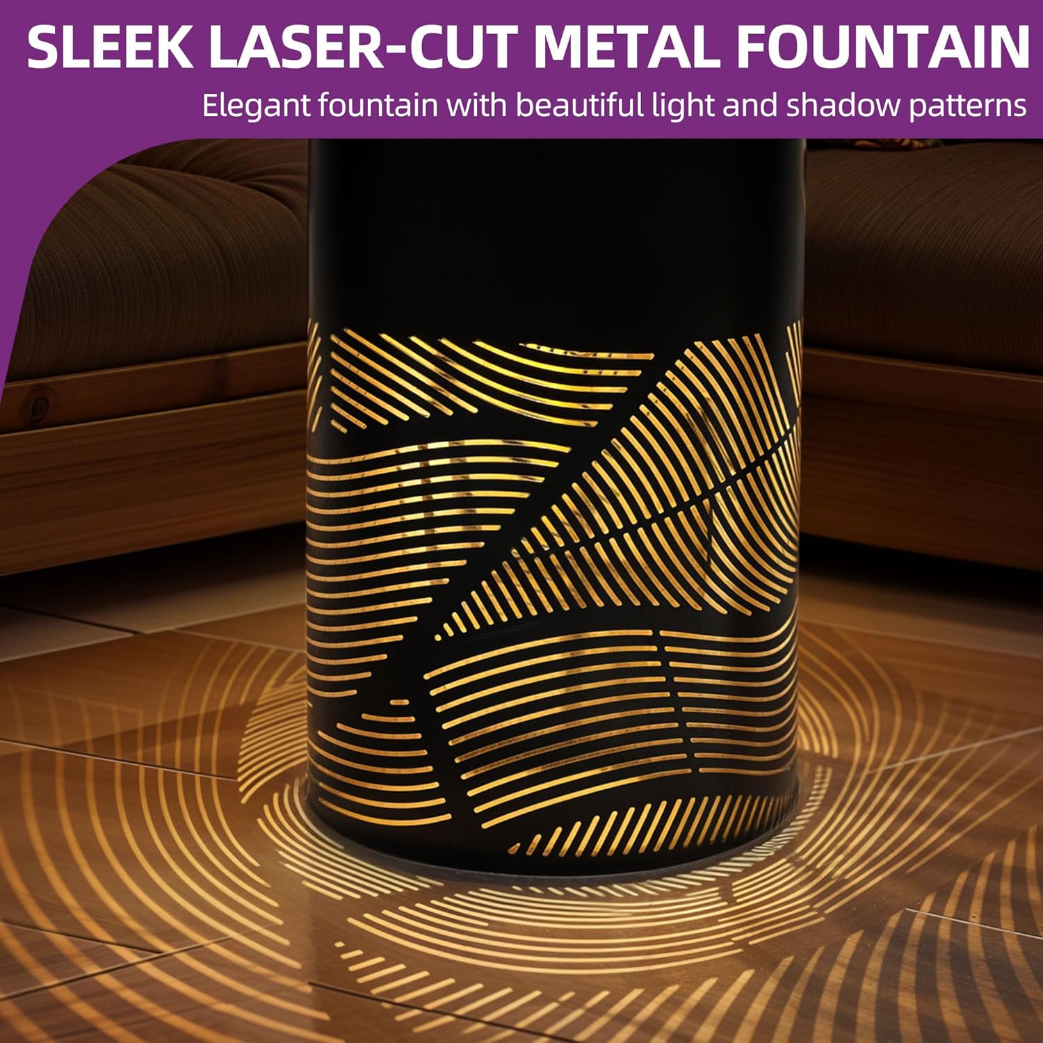 - ARTISTIC&ELEGANT DESIGN: This stunning Outdoor metal cutout fountain features modern laser - cut geometric patterns. The metal cutouts cast captivating lights and shadows, adding a touch of artistic elegance to your outdoor space. Measuring 11.81"L X 11.81"W X 23.62"H, focal point for any garden, patio, or outdoor living space.