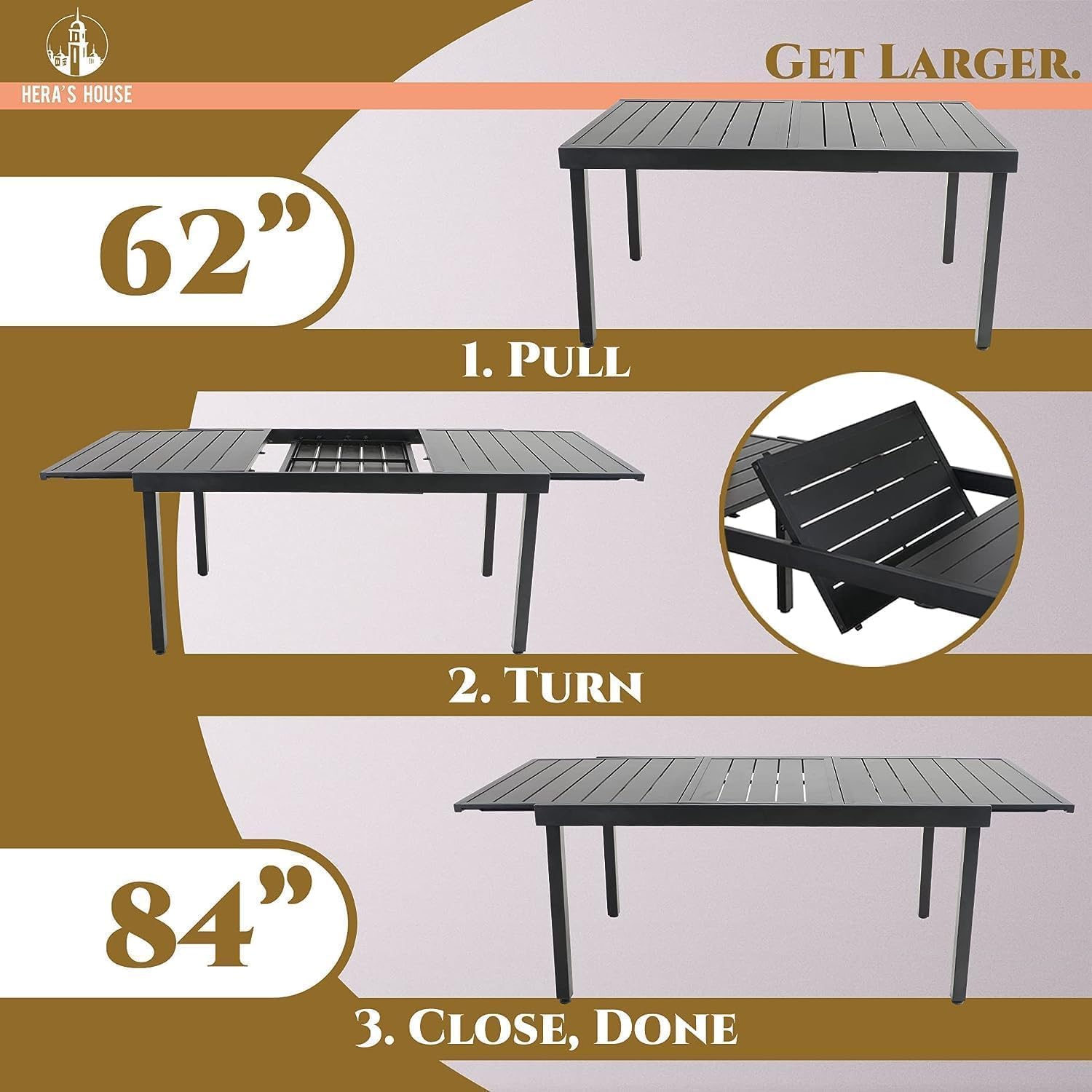 - Size : 62"/84"L x 37"W Expandable Metal Dining Table