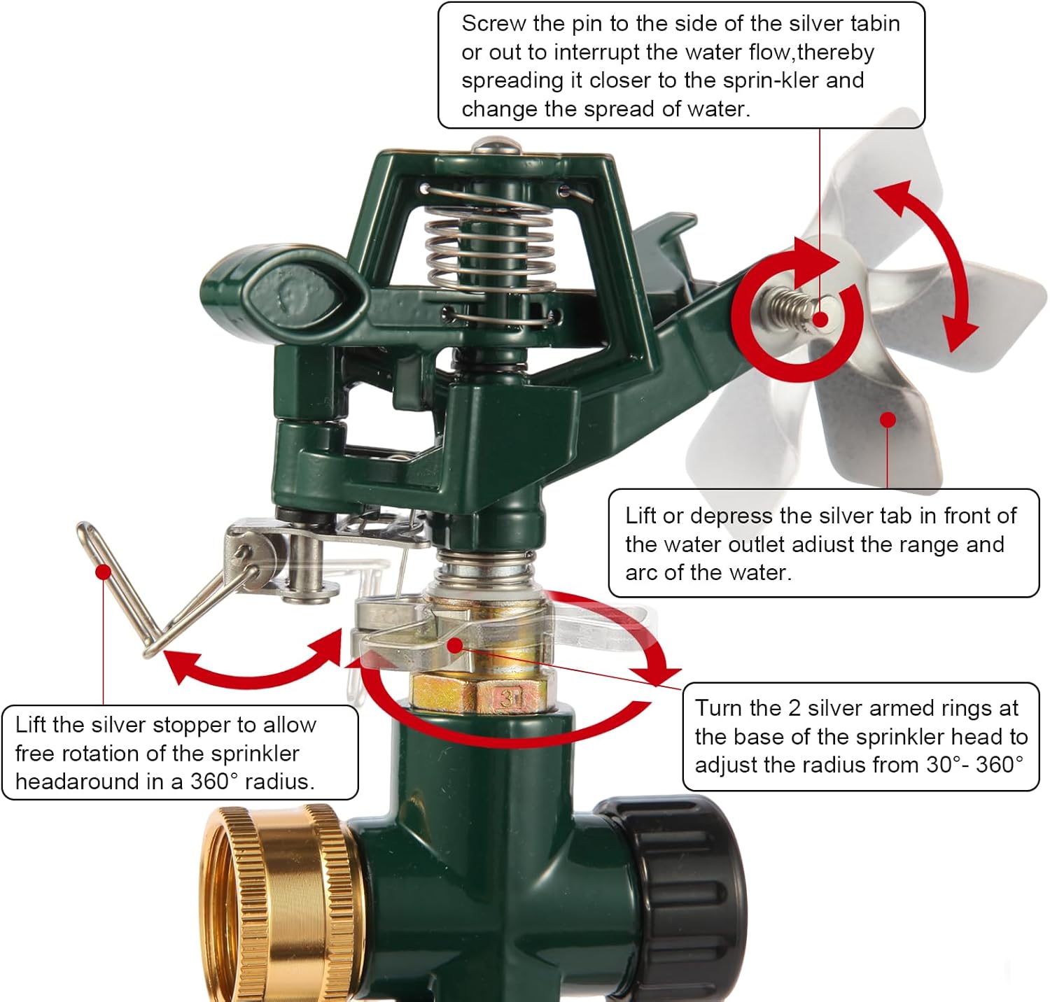 - Adjustable Spray Patterns: Featuring flexible paddles, this green zinc alloy water bird sprinkler allows precise control over spray angle and distance. Customize irrigation for narrow flower beds or expansive lawns, ensuring optimal water distribution while conserving resources.