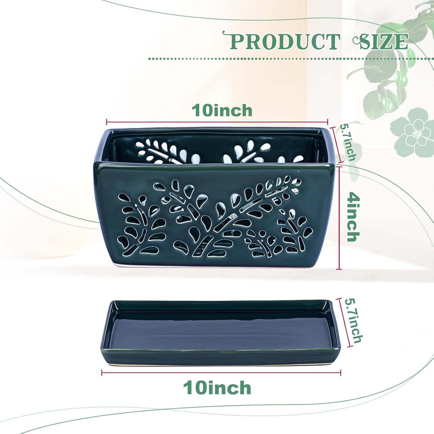- ☘️【10 inch Ceramic Orchid Pot】Large rectangular orchid pots have plenty of space, accommodates 2-3 orchids. Designed with orchids in mind, its compact yet spacious build encourages healthy root growth while keeping your delicate blooms perfectly secure. A flawless home for your cherished plants.