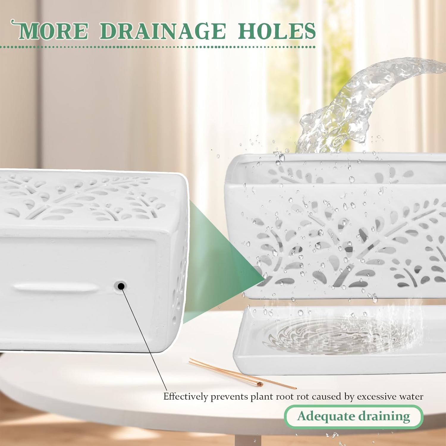 - ☘️【10 inch Ceramic Orchid Pot】Large rectangular orchid pots have plenty of space, accommodates 2-3 orchids. Designed with orchids in mind, its compact yet spacious build encourages healthy root growth while keeping your delicate blooms perfectly secure. A flawless home for your cherished plants.