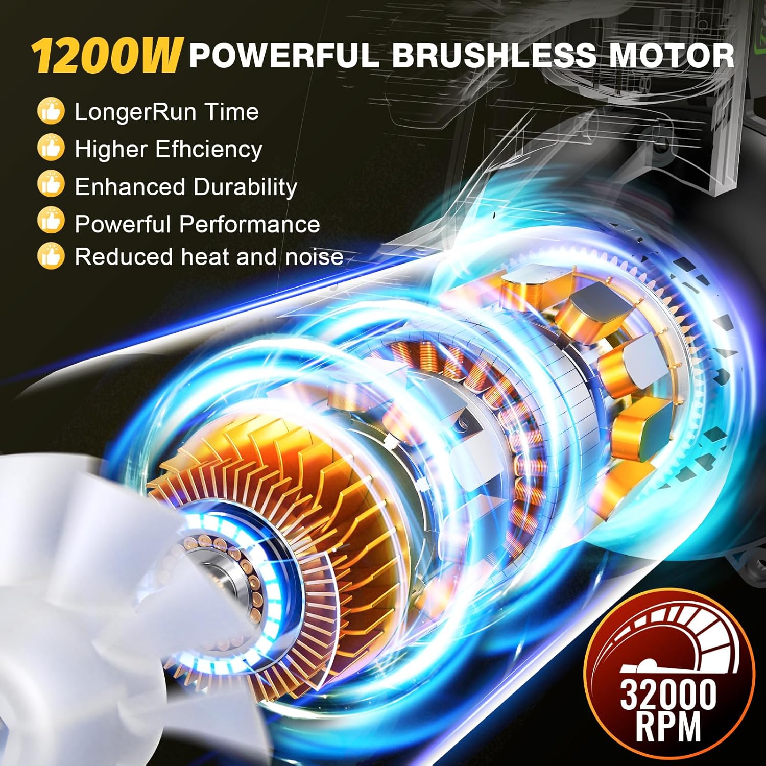 - ๐๐๐๐๐๐๐๐ ๐๐จ๐ฐ๐๐ซ๐๐ฎ๐ฅ ๐๐ซ๐ฎ๐ฌ๐ก๐ฅ๐๐ฌ๐ฌ ๐๐จ๐ญ๐จ๐ซ: Tietoc cordless leaf blower featuring an advanced brushless motor with a speed of up to 32000RPM, a maximum air volume of 735CFM, a maximum wind speed of 200MPH, it easily blows away fallen leaves, stubborn snow, and deep crevice dust, with a higher cleaning efficiency! In long-term high-intensity work, brushless motors can easily maintain low-temperature stable operation and have a longer working life!