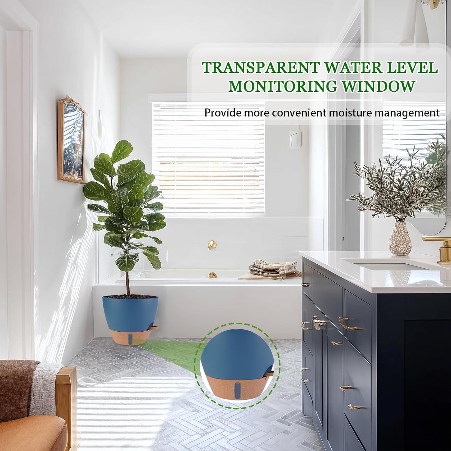 12/10/8 inch Plant Pots, Large Plastic Self Watering Planters with Drainage Holes, Deep Reservoir, Water Level Indicator, Modern Decorative Flower Pots for Indoor Outdoor Plants (Navy Blue, 12/10/8)