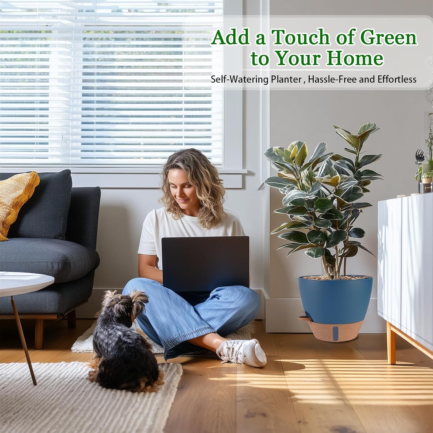 - 🌿【Self-Watering Feature】 The Fielda 12/10/8 Inch Plastic Planter Set comes with a built-in self-watering system that uses absorbent cotton wicks to draw water from the bottom tray into the planter. This ensures your plants stay hydrated with less effort, saving you from frequent watering. Whether you're a busy gardening enthusiast or away for long periods, you can easily maintain your plants' moisture balance, ensuring they get the right amount of water and nutrients.