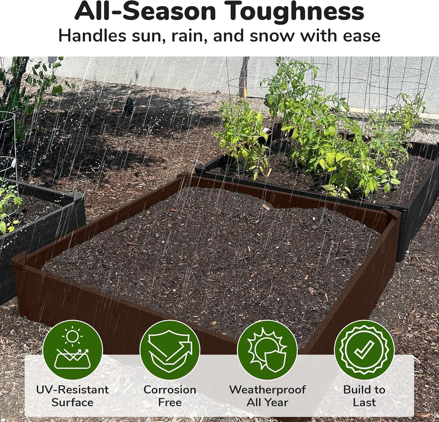 Raised Garden Bed - 4x4 ft Planter Box - Brown HDPE - No Tools Needed - DIY Kit for Urban Gardening, Flowers, Herbs & Vegetables - Made in The USA