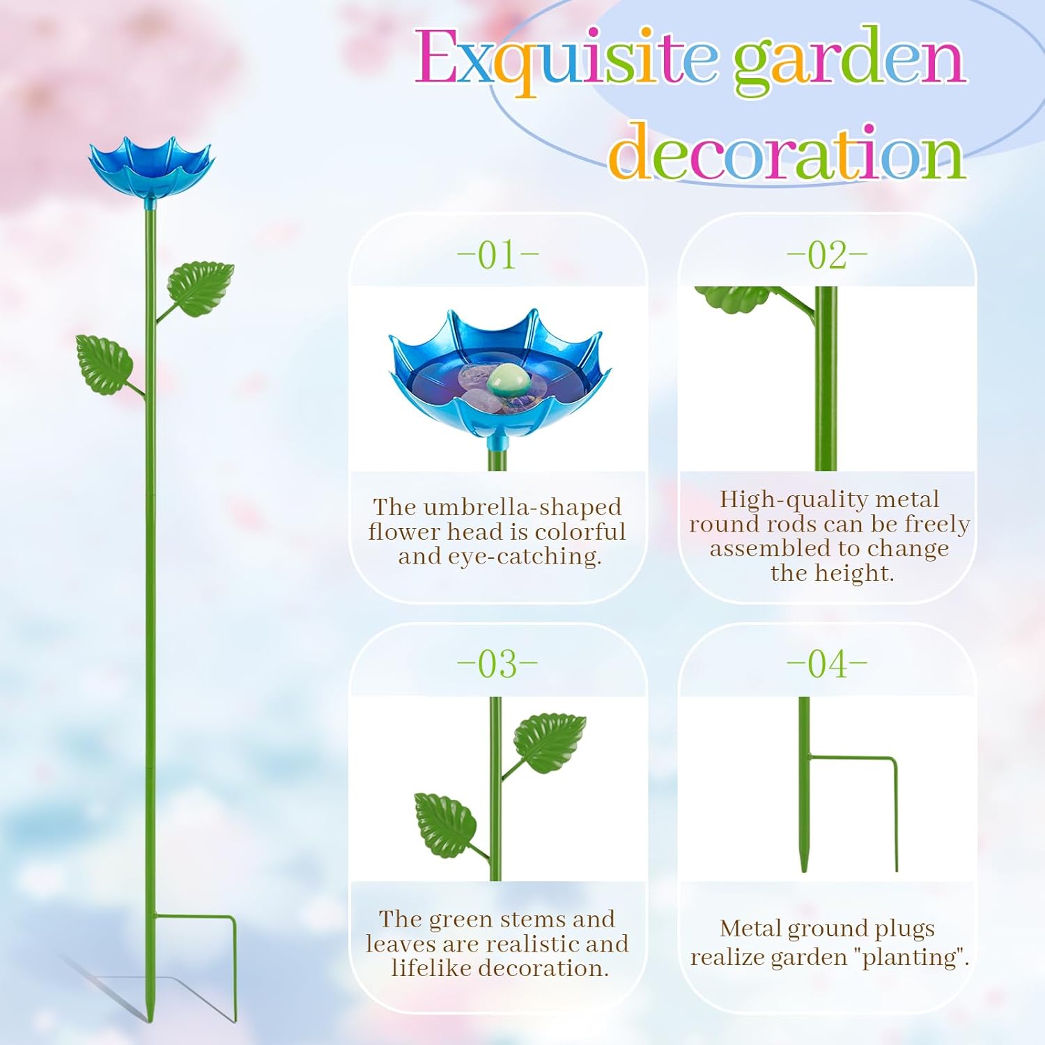 - Interesting umbrella appearance: The butterfly feeder is inspired by an umbrella blown over by the wind. The umbrella is painted in bright colors and matched with green leaves and branches as the handle, which can quickly attract the attention of bees and butterflies and decorate your garden and courtyard.