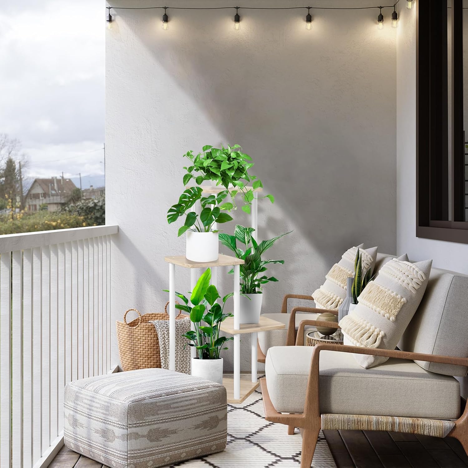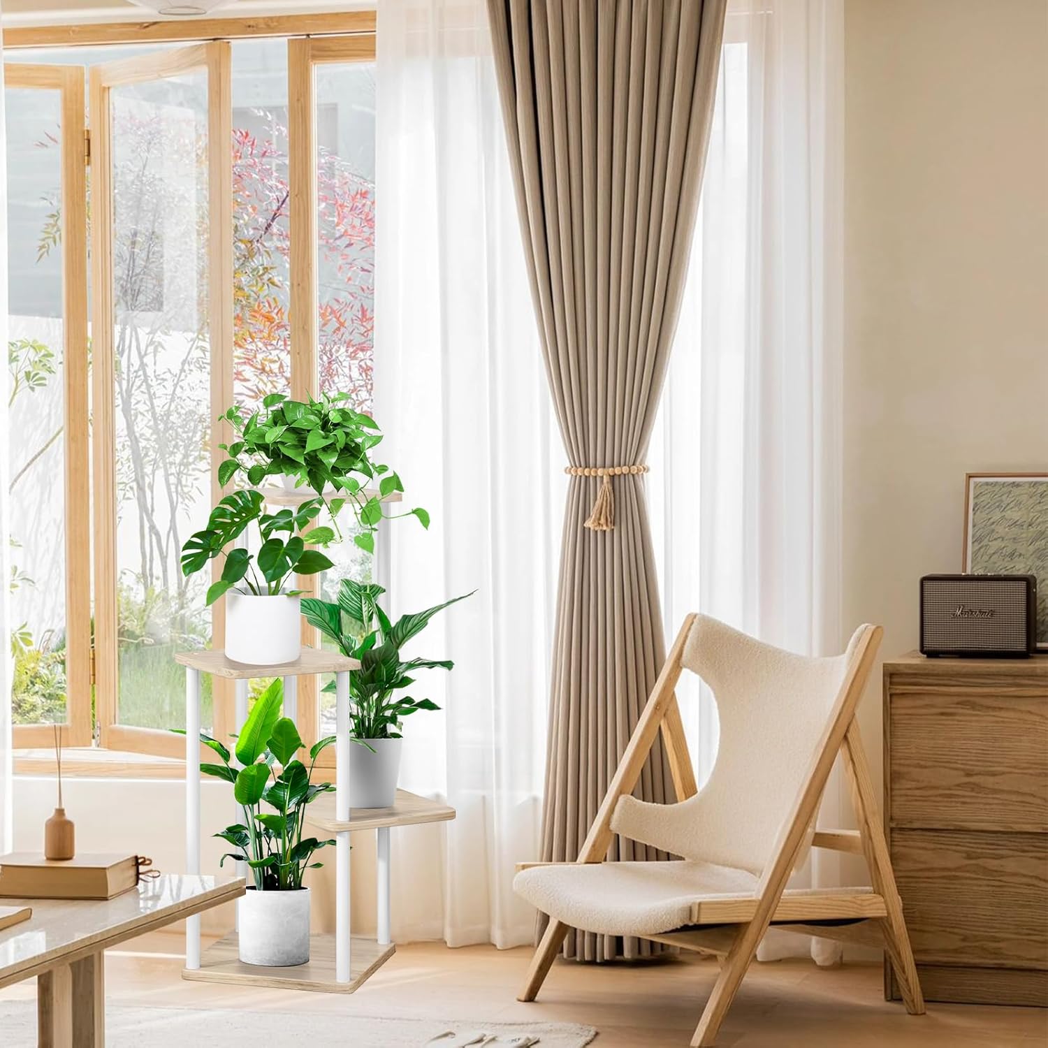 4 Tier Indoor Plant Stand Flower Shelf for Multiple Plants Corner, Tall Flower Holders for Patio Garden Living Room Balcony Bedroom(White Oak)