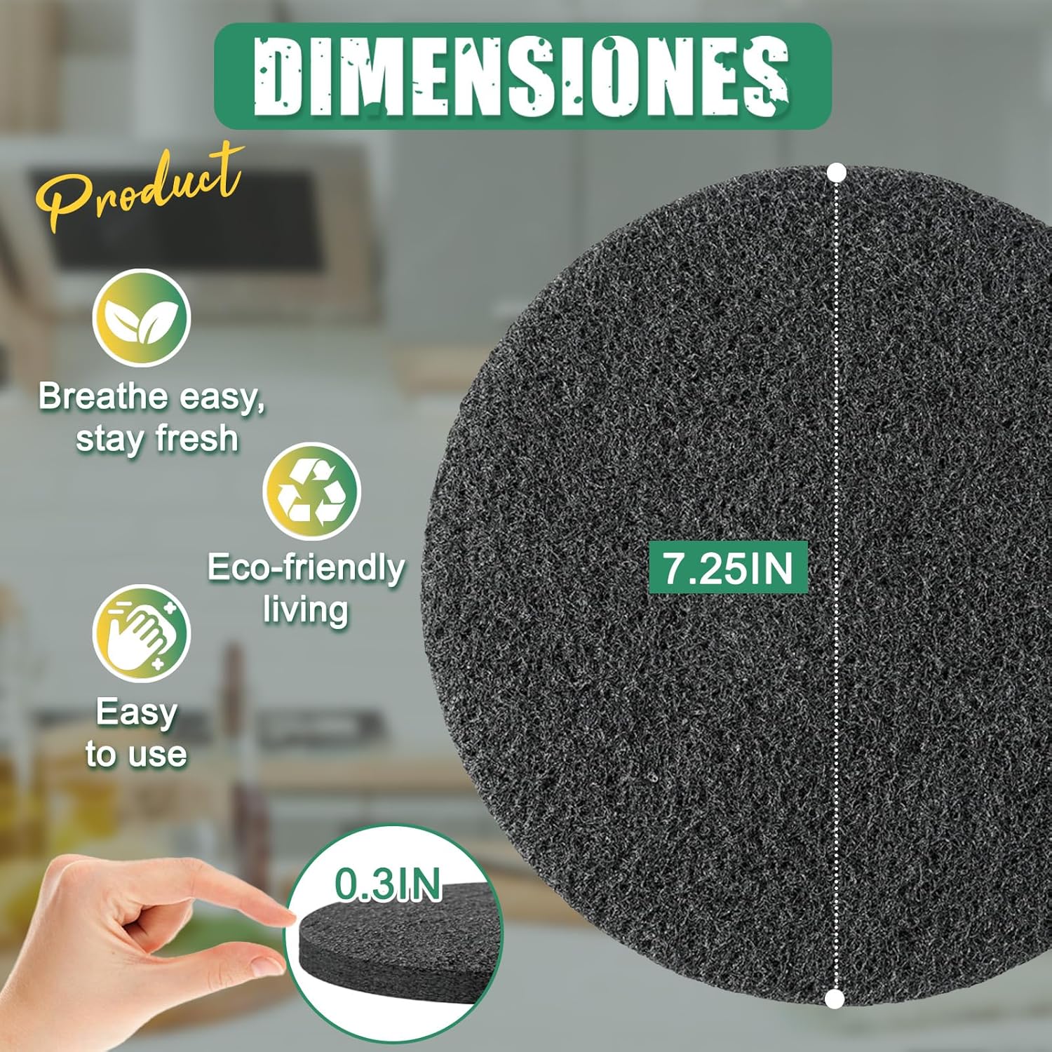- 【Universal Fit】: Each charcoal filter has a 7.25-inch diameter, making it compatible with most compost bin filter lids. They can be trimmed to fit 4", 5", 6", and 6.7" lids, or placed loosely in 8" lids—perfect for DIY adjustments.