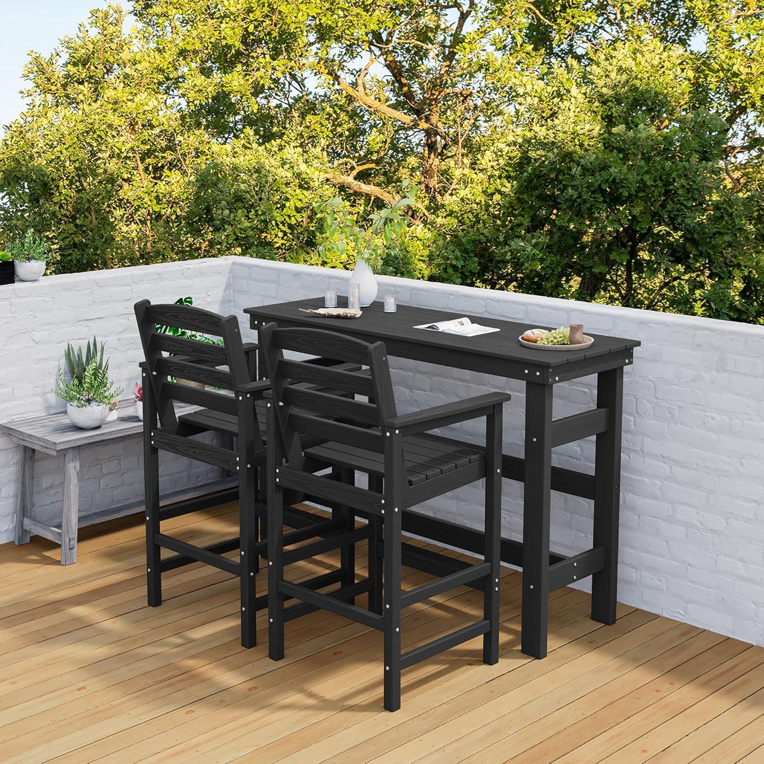 SERWALL 41" Outdoor Bar Table, All Weather HDPE Patio Bar Counter Height Table, Rectangle Patio Bar Table for Outside, Garden, Backyard, Balcony, Poolside, Black